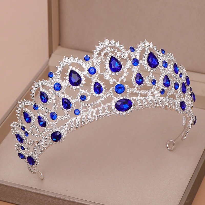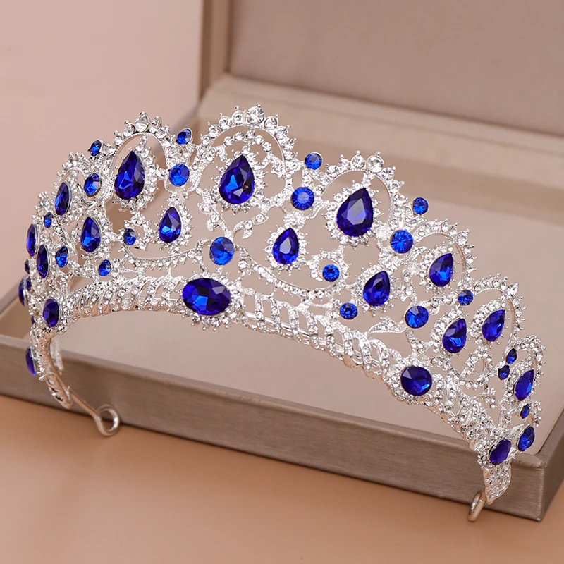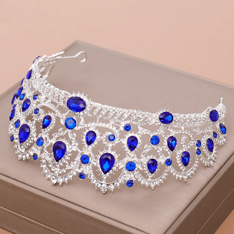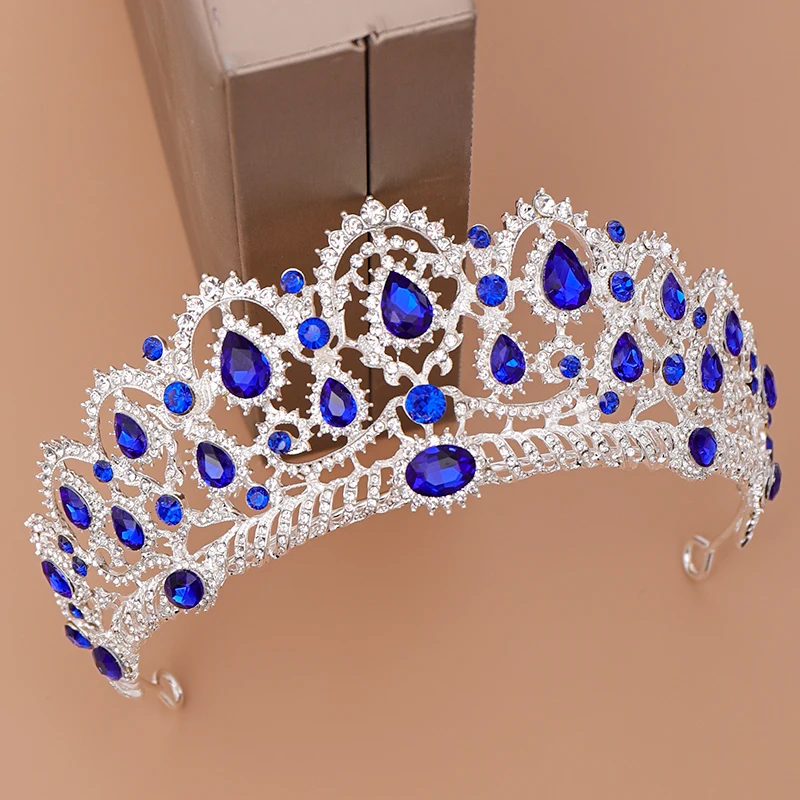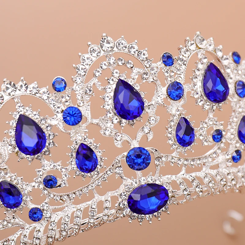 AiliBride Корона Королева Тиара Свадебные аксессуары для волос синие кристаллы стразы тиара и короны для невесты свадебные украшения для волос