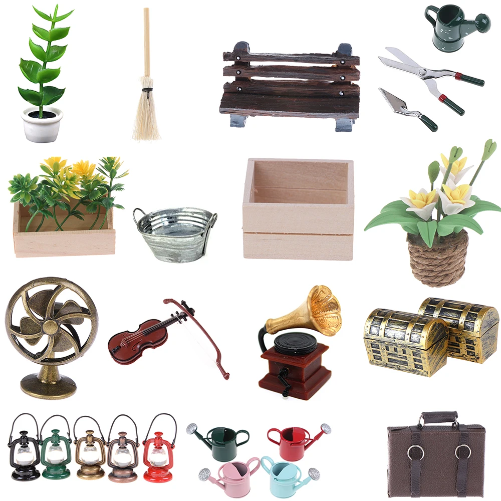 Лейка ножницы Лопата вентилятор деревянный стул цветок в горшке керосиновая лампа скрипка Ванна 1:12 кукольный домик украшения Аксессуары