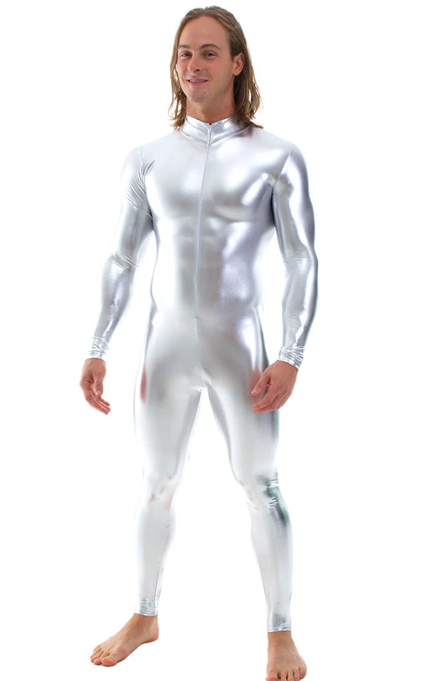 Мужской Блестящий Комбинезон Zentai, черный комбинезон с молнией спереди, боди из лайкры и спандекса, s