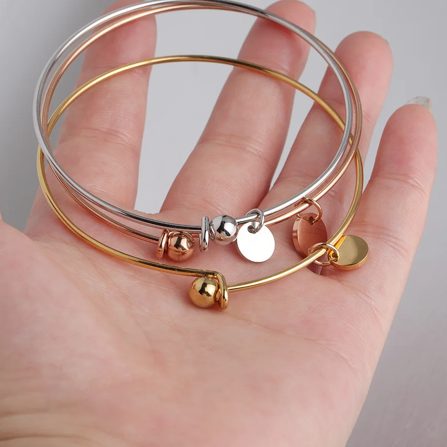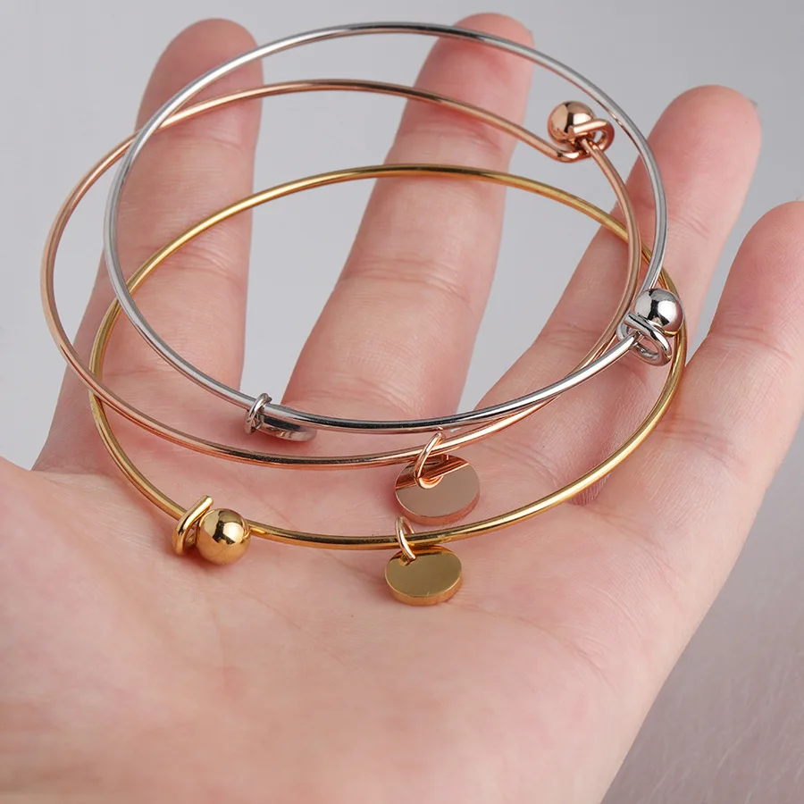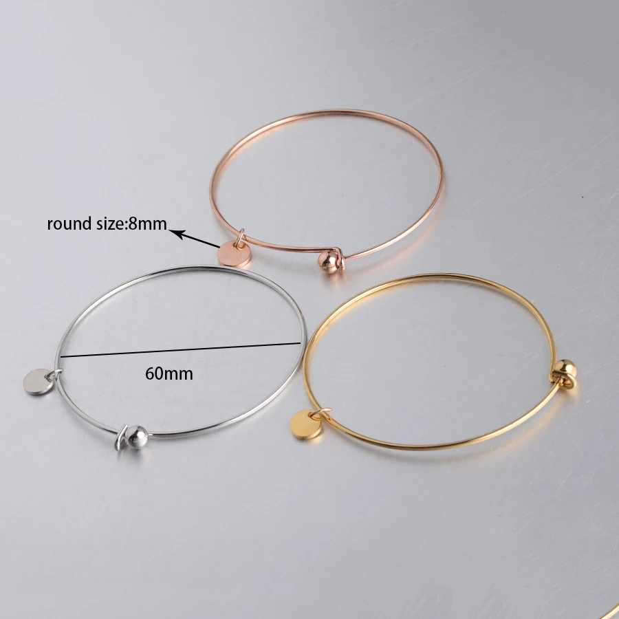 Браслет из нержавеющей стали 8 мм, серебристый/Золотой/розовое золото, Круглый, для гравировки, металлический Открытый браслет, зеркальная полировка, оптовая продажа, 10 шт.