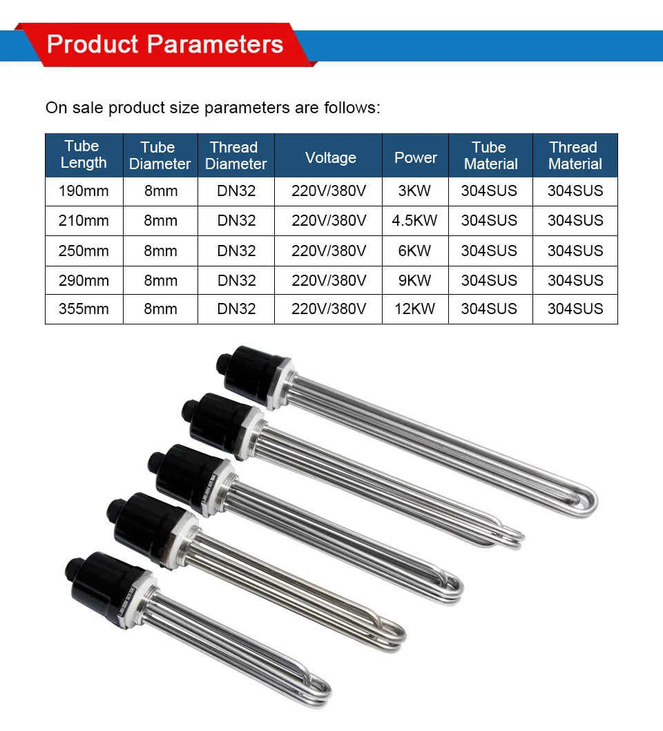 DN32 резьбовой электрический нагревательный элемент водонагревателя погружной элемент 3 кВт/4.5 кВт/6 кВт/9 кВт/12 кВт 220 В/380 В