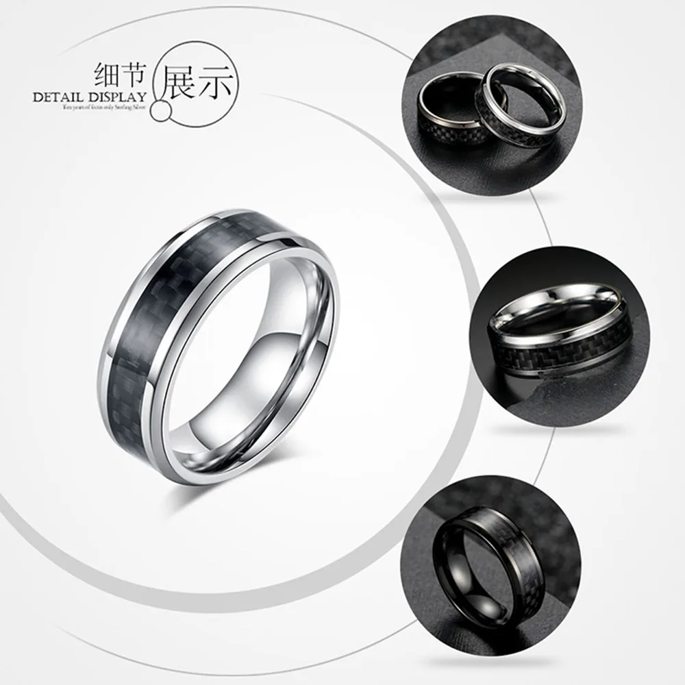 Черное кольцо из углеродного волокна и титановой стали, высококачественный подарок для мужчин, модное кольцо для пары, Женские Ювелирные изделия