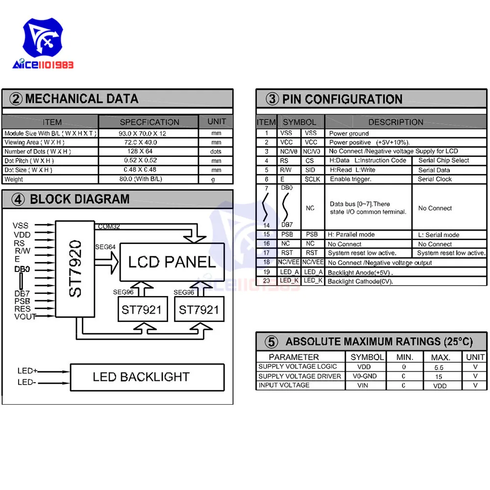 Графический ЖК-дисплей diymore 128x64 точки, 12864 дюйма, с подсветкой, ST7920 IIC I2C SPI, для 3D-принтера Arduino, Raspberry Pi, STM32