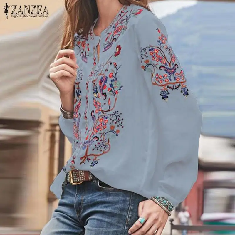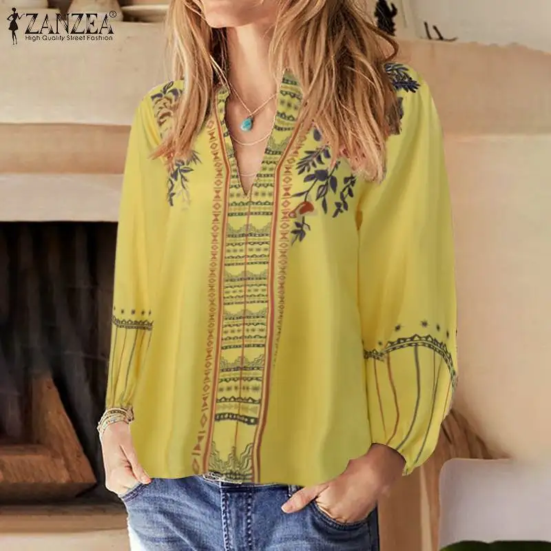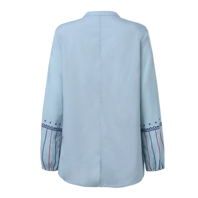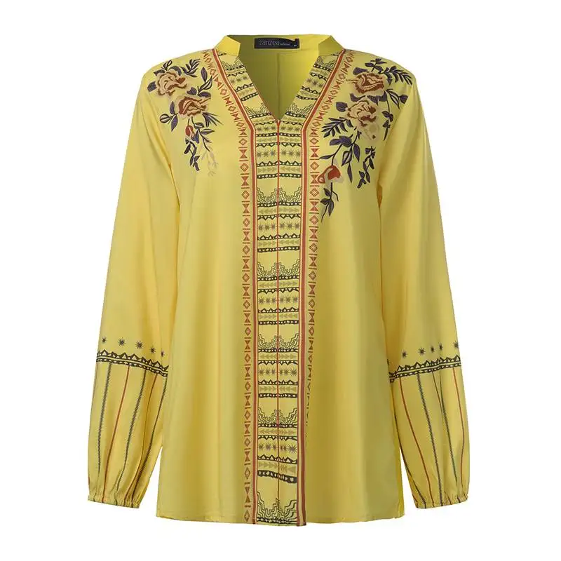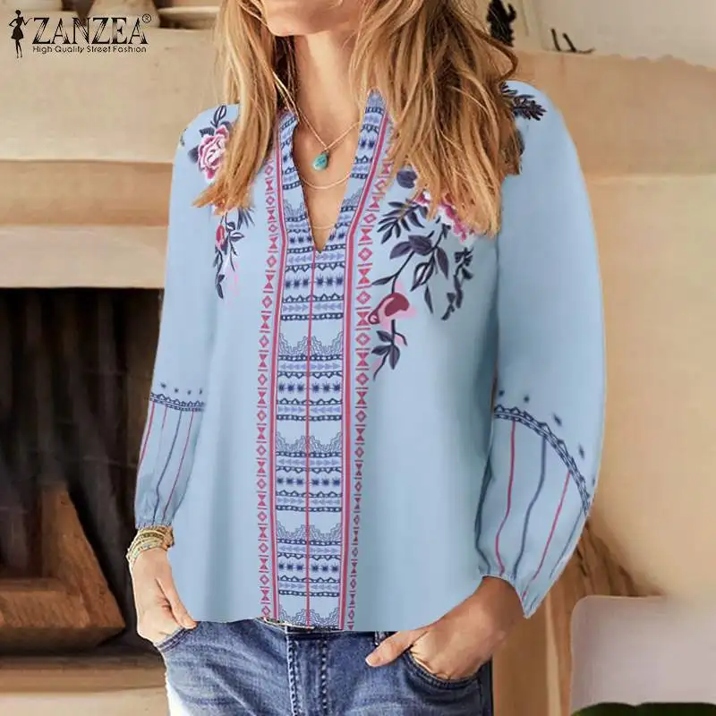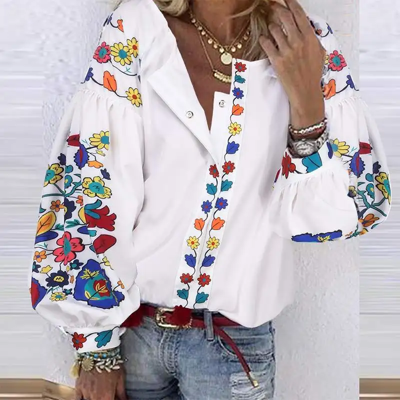 Топы женские осенние с принтом, с V-образным вырезом и длинным рукавом