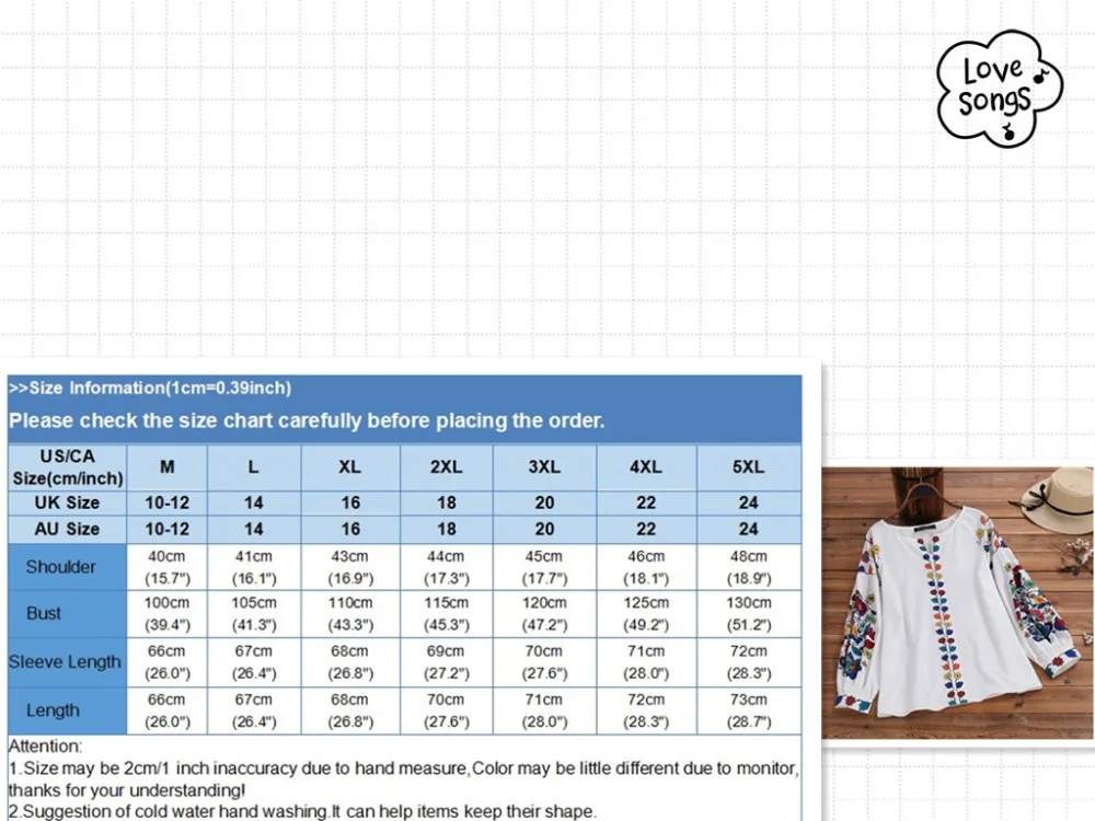 Хорошее качество по цене. Несмотря на то, что это не вышивка, принт выглядит хорошо. Топ хорошо смотрится с джинсами или джинсовой юбкой. Для британского размера 14, я заказал XXL, он немного свободный, но свободно сидит и хорошо выглядит. Прибыло в течение 2 недель с момента заказа.