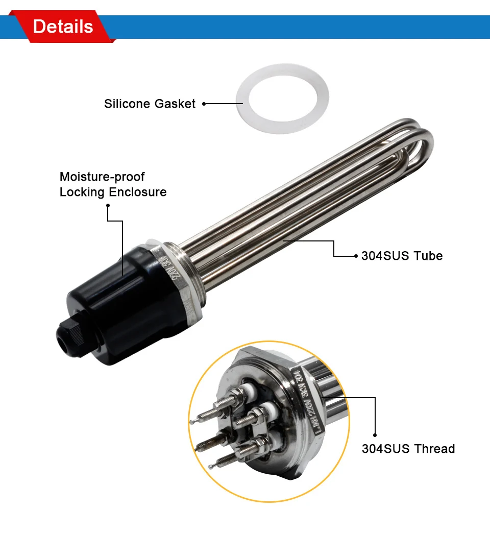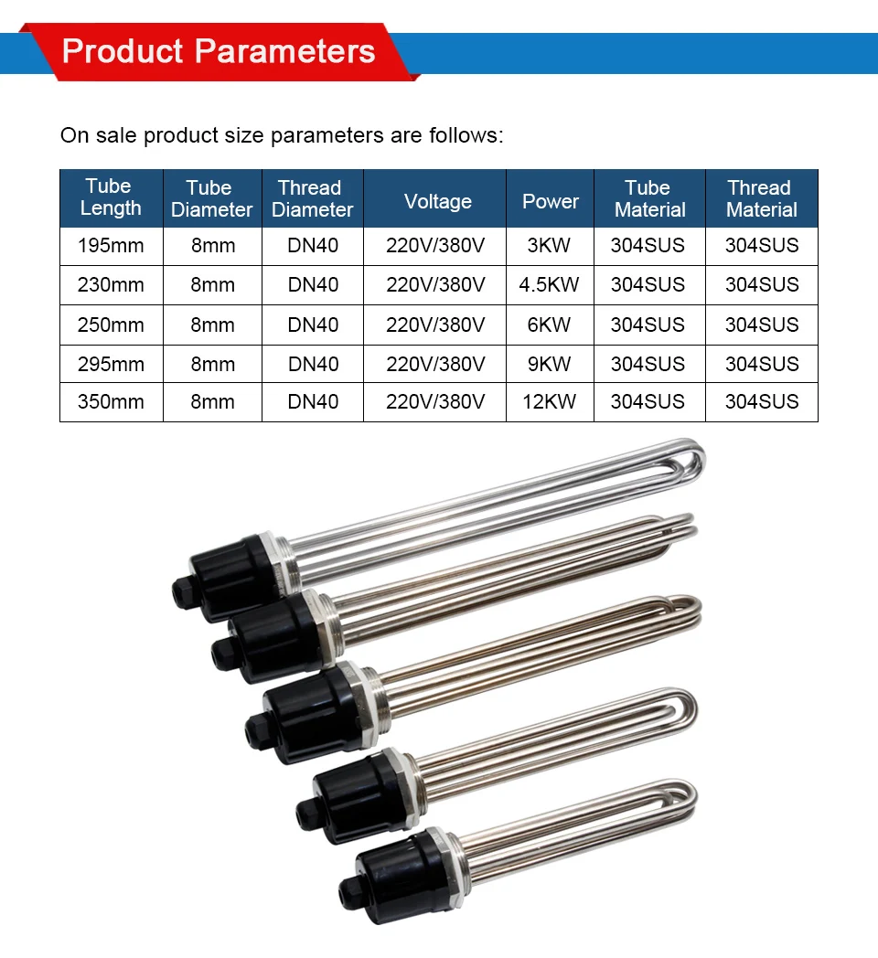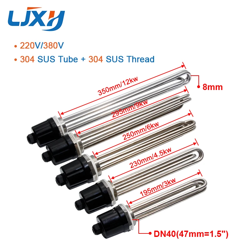 Погружной элемент электрической нагревательной трубы LJXH DN40 с резьбой BSP, 3 кВт1,5 кВт6 кВт9 кВт12 кВт, 220 В380 В