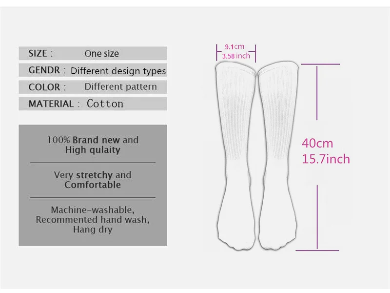 ★100% новый и высокое качество. ★Классный Дизайн-забавные уникальные узоры разработаны нами, мы ищем вдохновение для каждой детали из нашей жизни, включая еду, фрукты, такие как пицца, яйца, бекон, ананас, чипсы, крепы; животные, такие как кошка, тигр, жираф, лама, альпака, динозавры, акулы; Череп, эмоджи, И т. д., которые делают ваш Носки привлекательным в Баскетбол суда или вечерние. Мы используем насыщенные яркие цвета, добавить цвет и воображение, чтобы ваш Носки, выразить свою индивидуальность и отношение. ★Мягкий материал-мы используем высококачественный чесаный хлопок, чтобы наши носки, 75% полиэстер, 20% хлопок, 5% эластан, чтобы убедиться, что носки мягкие, легкие, удобные, эластичные и прочные. Вашим ногам будет чувствовать себя комфортно, дышащие и удобные. Эти колготки средней толщины; Подходит для четыре сезона носить. ★Многофункциональные-наши носки с 3D принтом могут сочетаться с мужскими сандалиями, сапогами, кроссовками, беговыми кроссовками и модельными туфлями. Эклектическая конструкции Веселые носки без пятки может быть носить с школьная форма, повседневные джинсы, держащих букет невесты на свадьбе, костюмы с платьем, а также деловой комплект строгой одежды. Самым привлекательным с печатным рисунком делает вас выдающимся в толпе. ★Идеальный выбор подарка-наши носки могут стать вашим идеальным подарком для ваших любимых на праздники, такие как День сумасшедших носков, День отца, День Святого Валентина, Рождество, День благодарения, годовщина, день рождения, свадьба и т. Д. Новизна подарки на день рождения для вашего сына, мужа, друга, женихов, отец или дедушка. Материал: хлопок + полиэстер + спандекс Носки ширина: 9,1 см Высота носков: 40 см Цвет: M1,M2,M3 Вес: около 40 г Посылка: 1 пара носки Примечание: Уважаемые покупатели, из-за различных настроек дисплея компьютера реальный продукт может иметь небольшую погрешность в цвете. Возможны отклонения в размере от 1 до 3 см. Спасибо за ваше понимание.