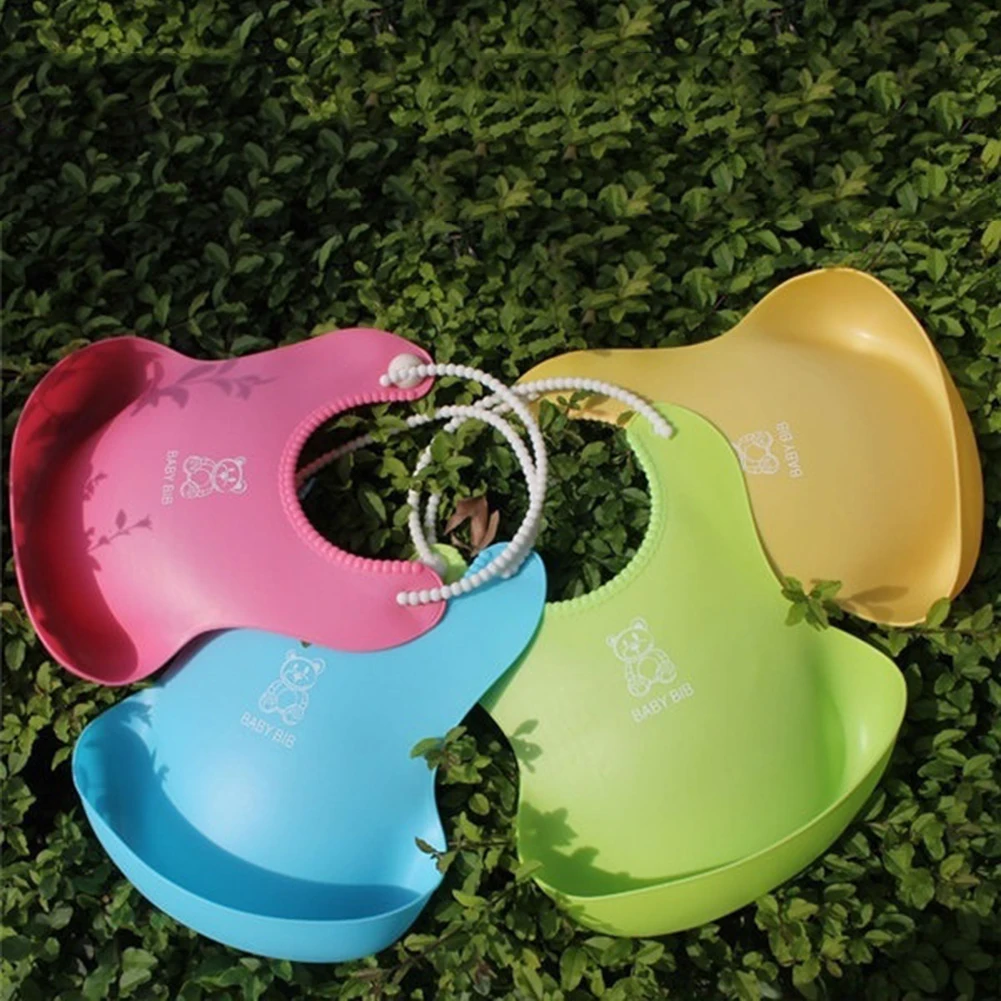 Детские Водонепроницаемые Мягкие Силиконовые Слюнявчики для младенцев с мультяшным принтом, регулируемые приспособления для кормления, 4 цвета, защитные нагрудники