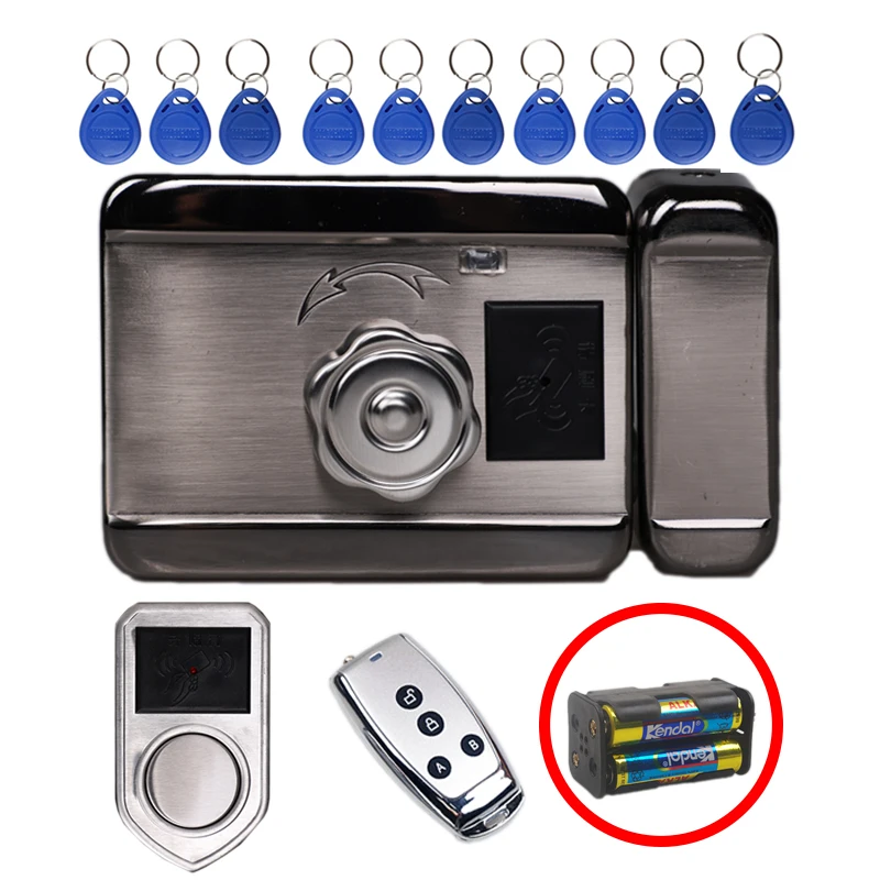 Электрический замок (вы можете выбрать один или два конца самостоятельно) + напольный считыватель + 3 ключа + мастер-карта + 10 чипов помощи брелок + винты + руководство пользователя на английском языке + пульт дистанционного управления (опционально)