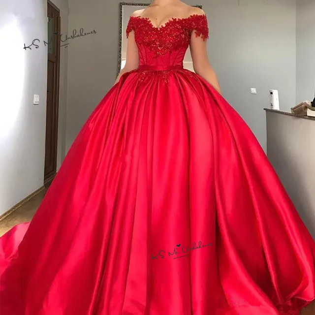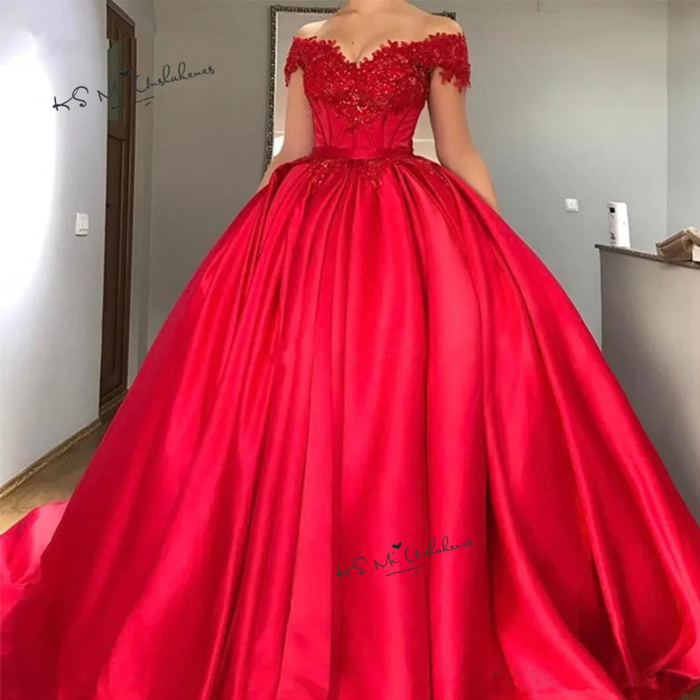 Женское свадебное платье, красное платье с открытыми плечами, атласное платье для невесты, 2020