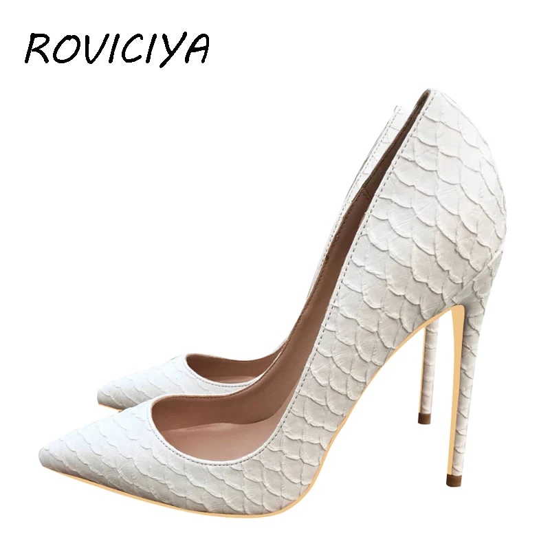 Белые туфли-лодочки; Женская обувь известного бренда; Пикантные туфли с острым носком на высоком каблуке 12 см; Размера плюс; YG021 ROVICIYA