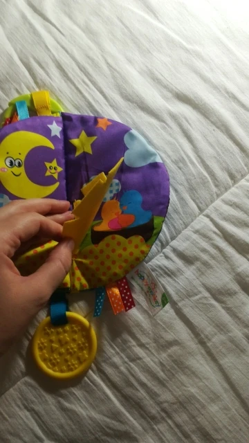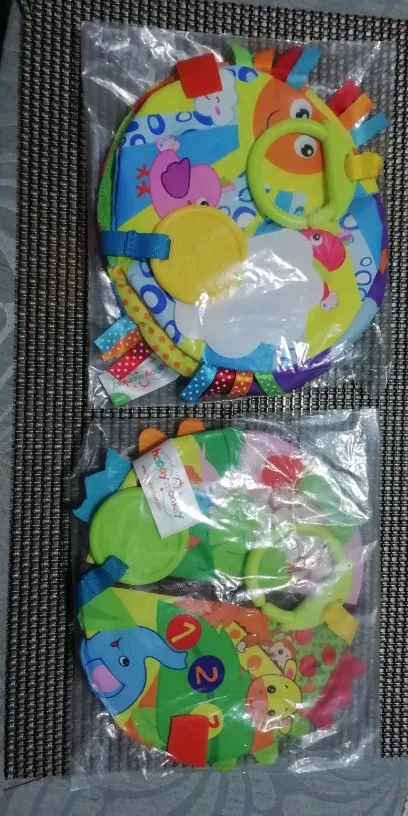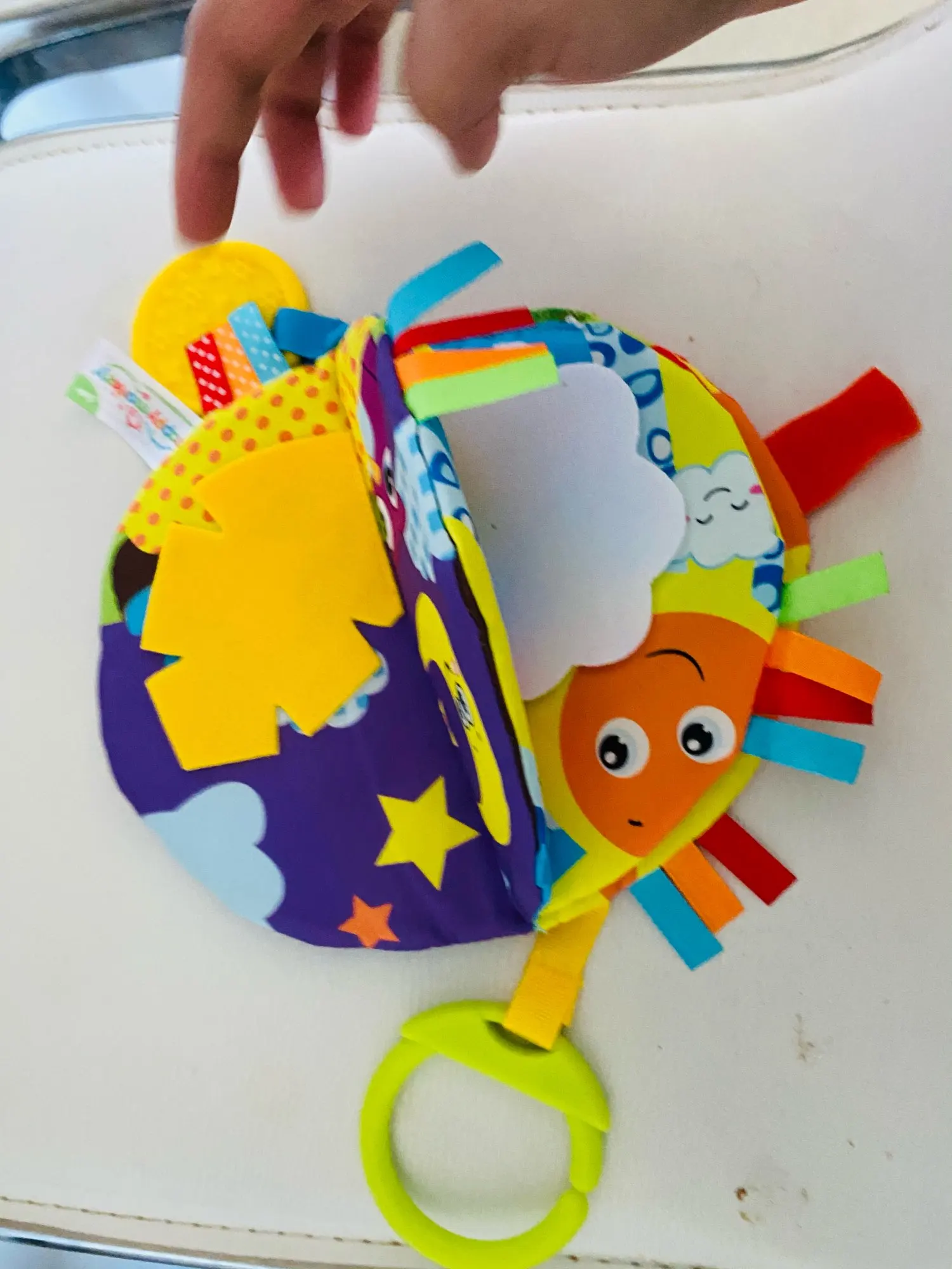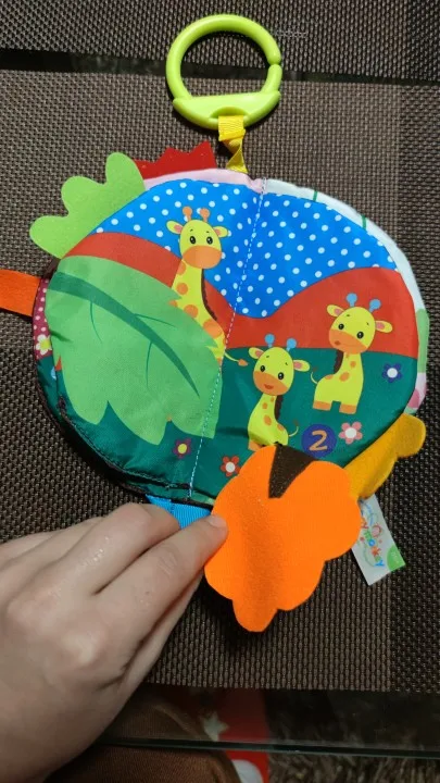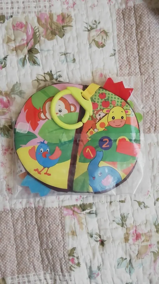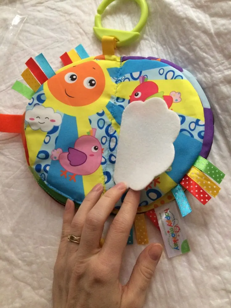 Какая красивая тканевая книга с застежкой-липучкой. Доставка была быстрой. Получил в течение 25 дней с момента заказа. Красиво сшито. Очень нравится цветовая гамма, очень интерактивная. Поставляется с прорезывателем и подвесным зажимом. Легко повесить на игровой коврик и коляску. Есть нажатие sparrow в день карты. Помогает развивать двигательные и сенсорные навыки младенцев. Кроме того, вы получите бесплатную наклейку от поставщика.
