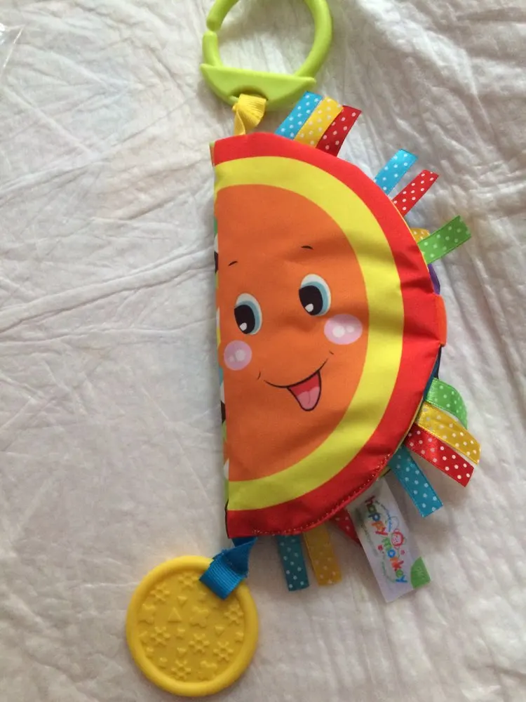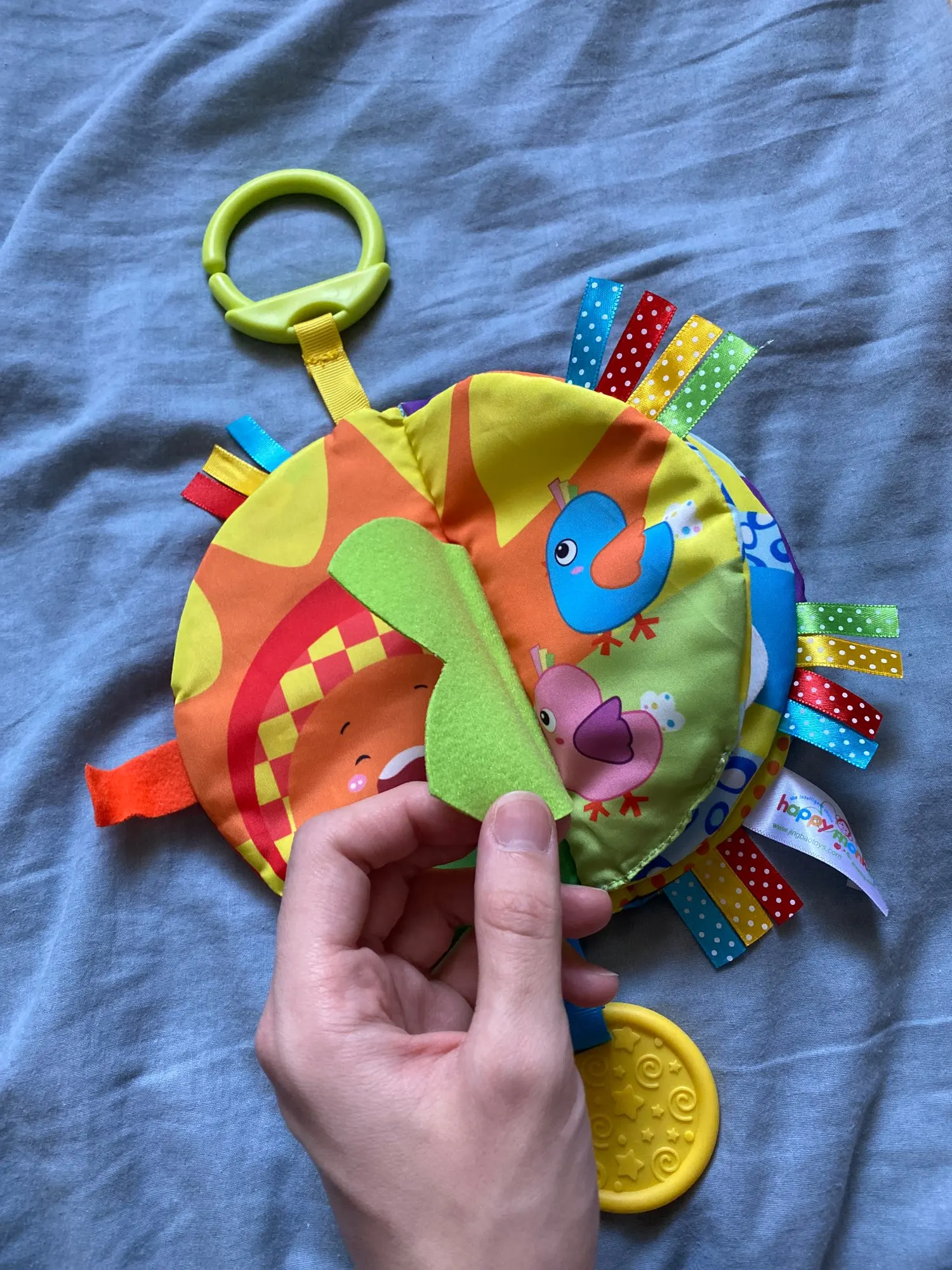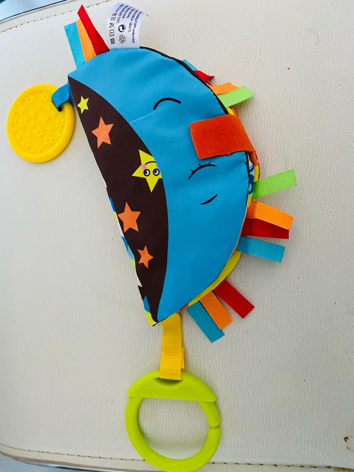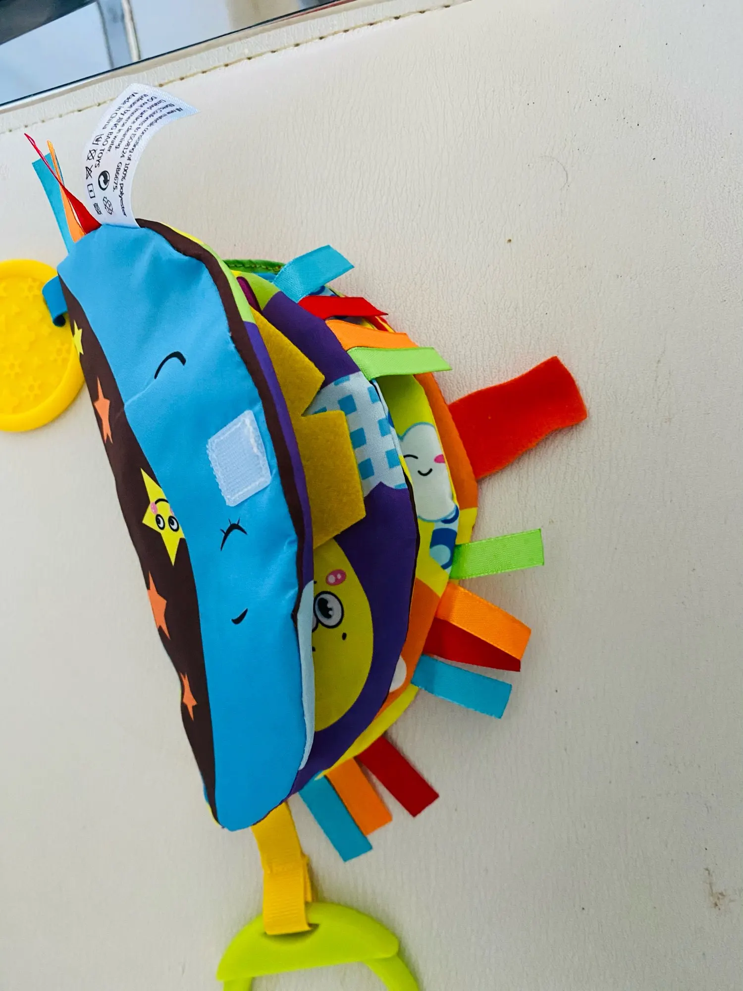 Какая красивая тканевая книга с застежкой-липучкой. Доставка была быстрой. Получил в течение 25 дней с момента заказа. Красиво сшито. Очень нравится цветовая гамма, очень интерактивная. Поставляется с прорезывателем и подвесным зажимом. Легко повесить на игровой коврик и коляску. Есть нажатие sparrow в день карты. Помогает развивать двигательные и сенсорные навыки младенцев. Кроме того, вы получите бесплатную наклейку от поставщика.