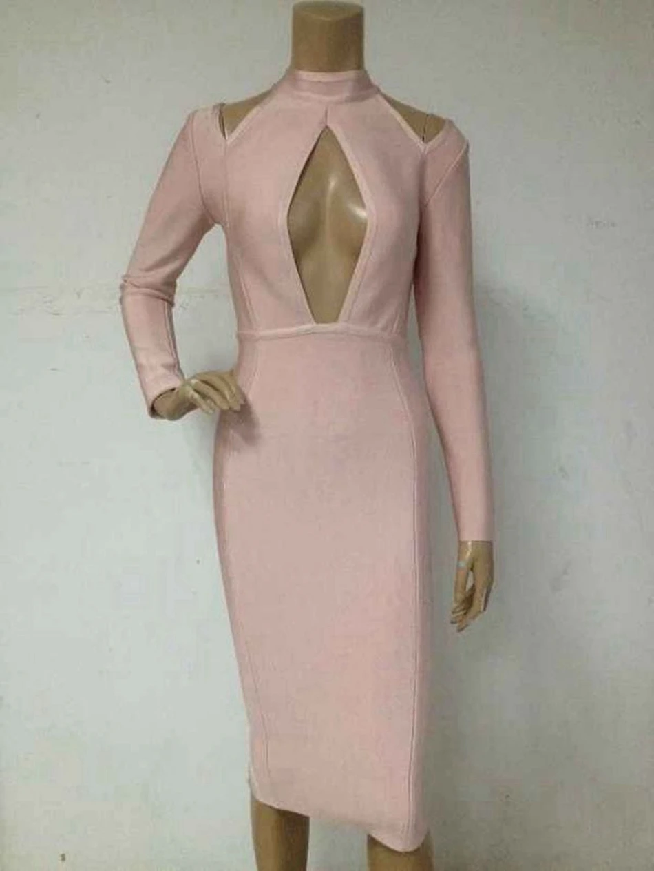 Женское облегающее платье с длинным рукавом, обтягивающее платье телесного цвета, Клубное платье с вырезами, вечернее праздвечерние чное платье знаменитости, зима 2019