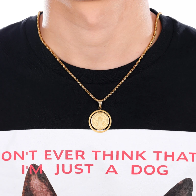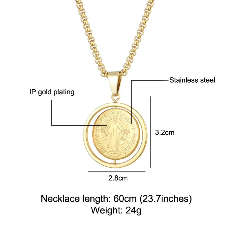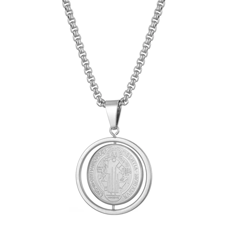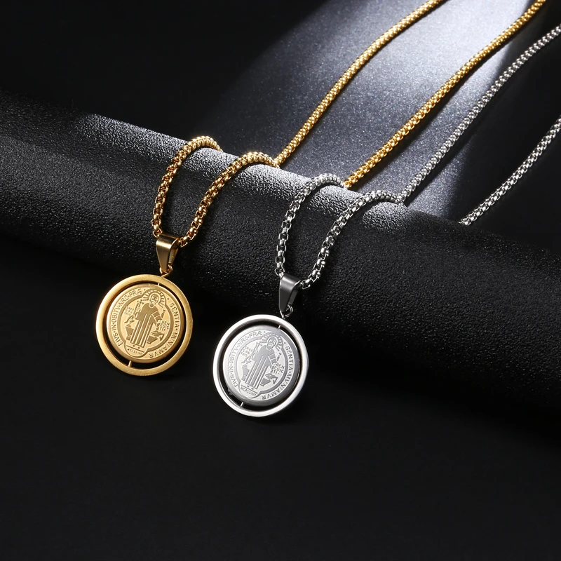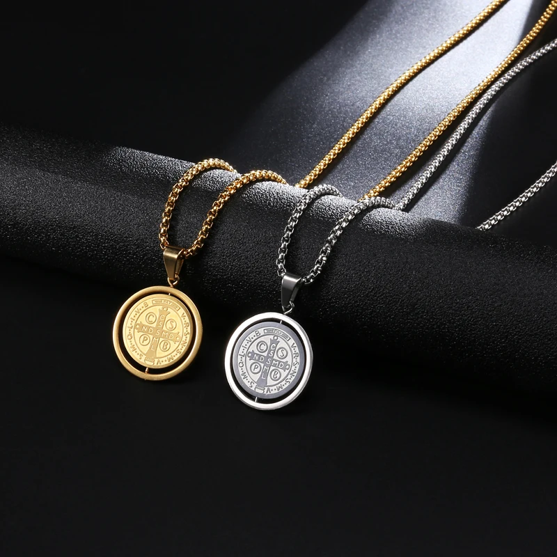 Вращающийся кулон в виде медальона в стиле Сан-Бенито, ожерелье из нержавеющей стали 316L, крест Иисуса, ожерелье для мужчин, католические украшения