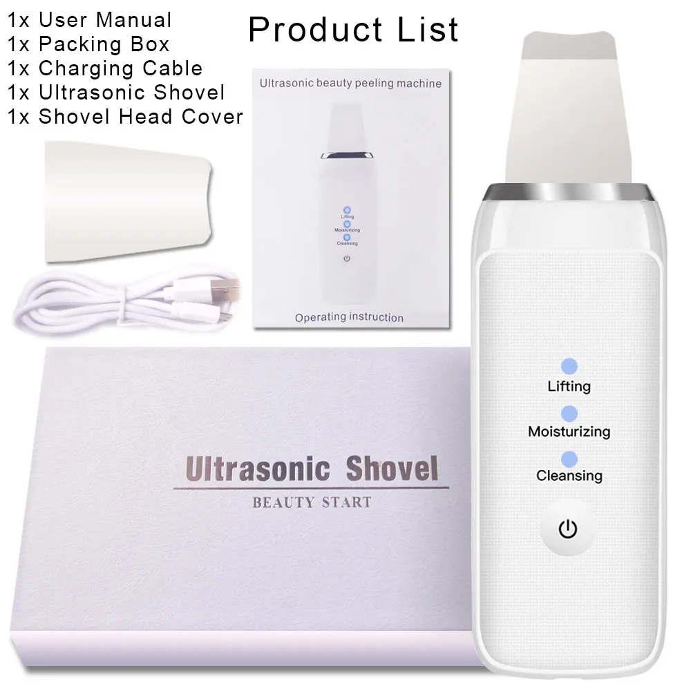 【 1 】 Скруббер кожи: благодаря высокочастотной вибрации быстро удаляет угревые угри, омертвевшее масло кожи, макияж и т. д. Сделайте вашу кожу более чистой и гладкой. Настоятельно рекомендуем использовать это после душа или после отпаривания лица, чтобы открыть поры. 【 2 】 3 функциональных режима: глубокое очищение; Высокая частая вибрация может проникать в вашу кожу на глубину около 3-5 мм, эффективно очищает поры кожи. Способствует циркуляции крови и метаболизму кожи; Устраняет морщины, подтягивает и подтягивает лицо. 【 3 】 безопасная и перезаряжаемая USB: шпатель изготовлен из 100% медицинской нержавеющей стали для всех цветов и типов кожи. Эффективно удаляет черные головки, этот новый Усовершенствованный инструмент для удаления черных точек не вызывает каких-либо повреждений вашей кожи по сравнению с оригинальным инструментом для удаления черных точек. Безопасно и эффективно. Прочный портативный Перезаряжаемый и удобный. 【 4 】 Теплые советы: лучше работать вместе с продуктами по уходу за кожей, такими как Глубокое Очищающее Масло, очищающая пена, тонер, эфирное масло, эссенционный крем и т. д. Подходит для дома, салонов красоты, а также во время путешествий. Лучший выбор для очистки и ухода за кожей. --> Особенности продукта: 1. Глубокая очистка и очистка 2. Разложение пигмента и точка опреснения 3. Глубокая рифтидэктомия и повышает эластичность кожи 4. Стимулирование кровообращения и лимфатического метаболизма 5. Повышает регенеративную способность и проницаемость клеток кожи 6. Массаж кожи, введение в питании и пестрый вывод Параметры продукта: Товар: ультразвуковой скруббер для кожи Материал: АБС-пластик Вес изделия: вес тела около 99 г Размер изделия: 55*165*15,5 мм Выходное напряжение: 5 В/600 мА Выходная мощность: 2 Вт Время зарядки: 3-4 часа Три вида режимов: очищение, увлажнение и подъем можно выбрать на одной и той же кнопке. Посылка включает в себя: 1x Руководство пользователя 1 Толстая коробка или без коробки 1x кабель для зарядки 1x ультразвуковой лопата для снега 1х крышка головки лопаты