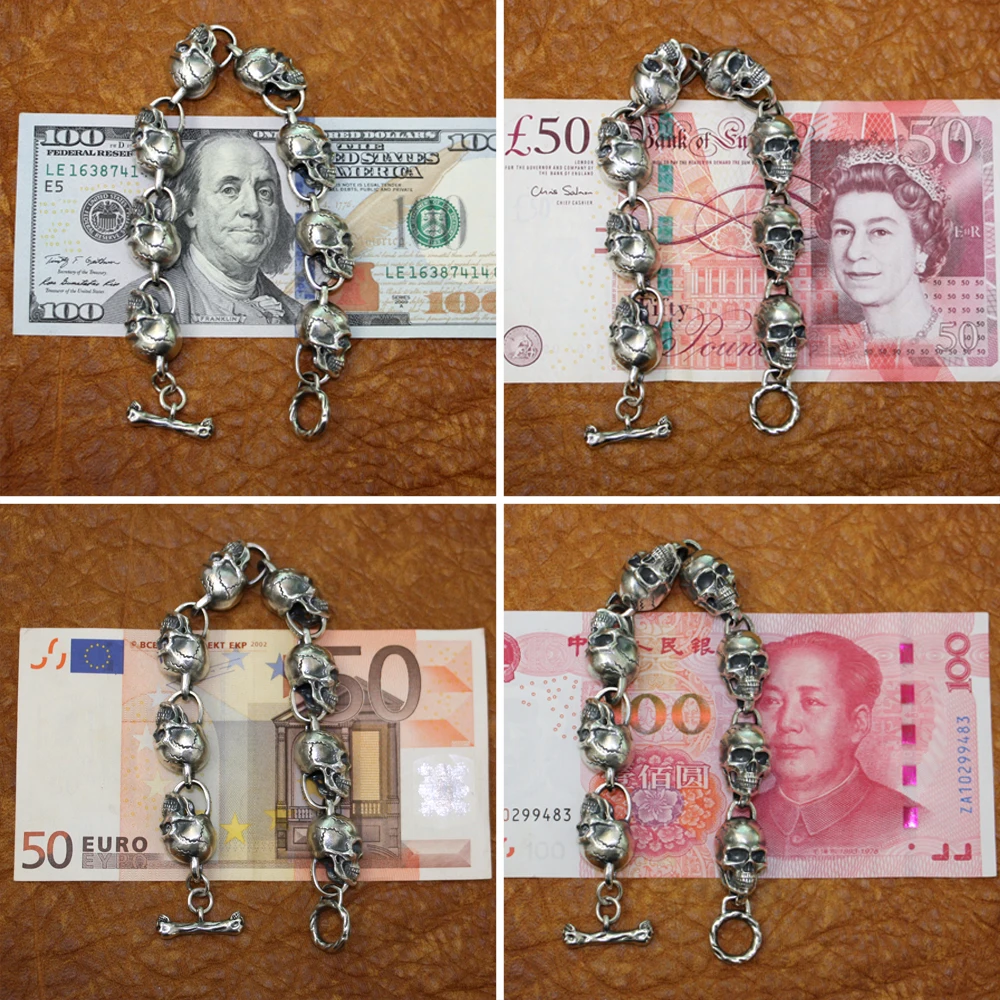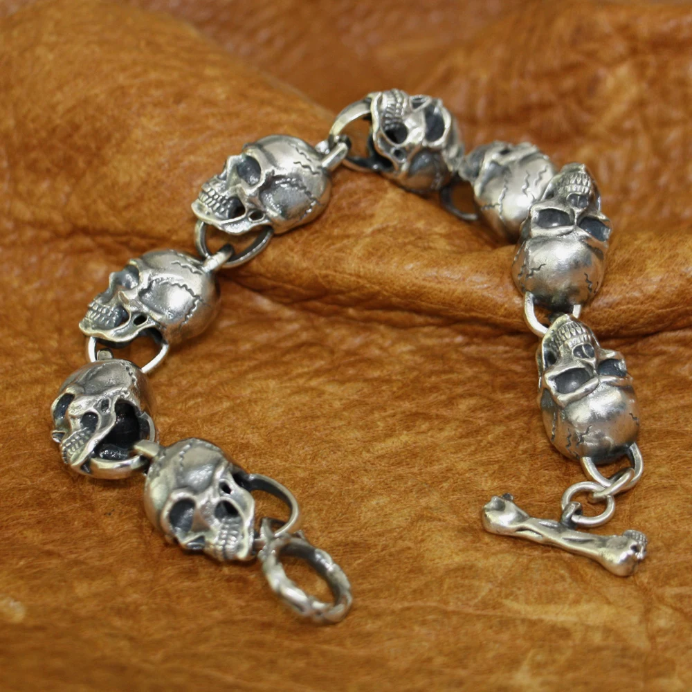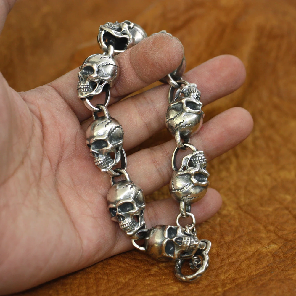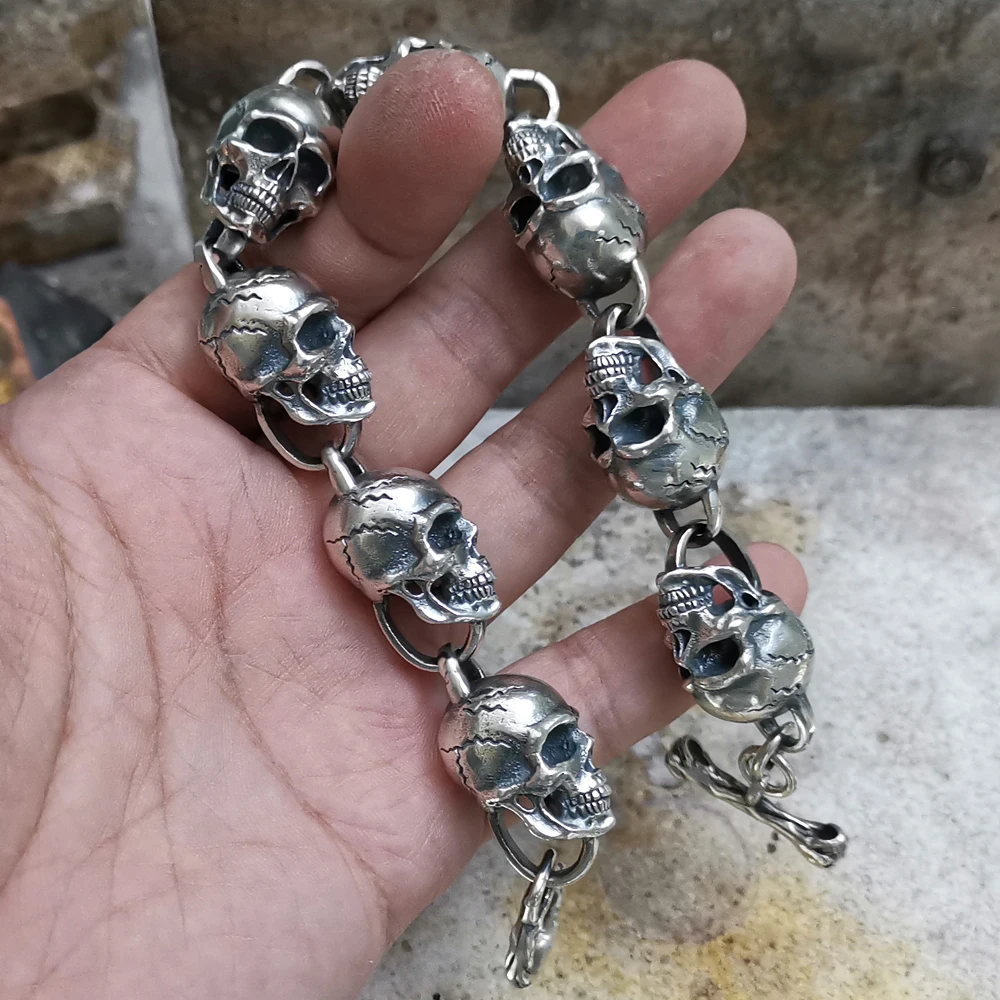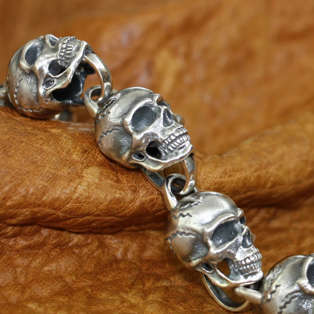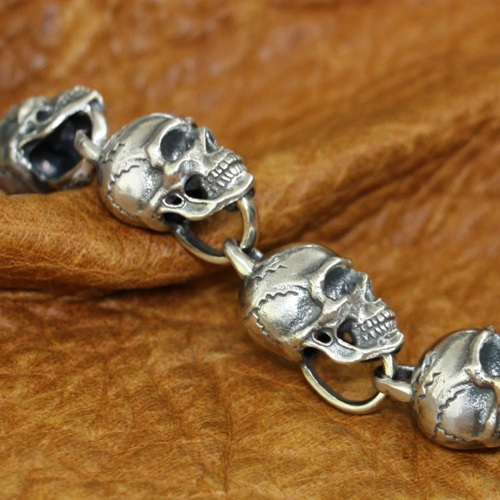 Мужской Байкерский панк-браслет LINSION, цепочка с большими черепами и серебристыми деталями, TA182