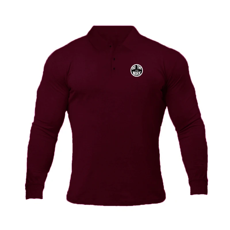 Мужская хлопковая рубашка-поло с длинным рукавом, в спортивном зале