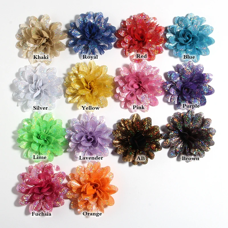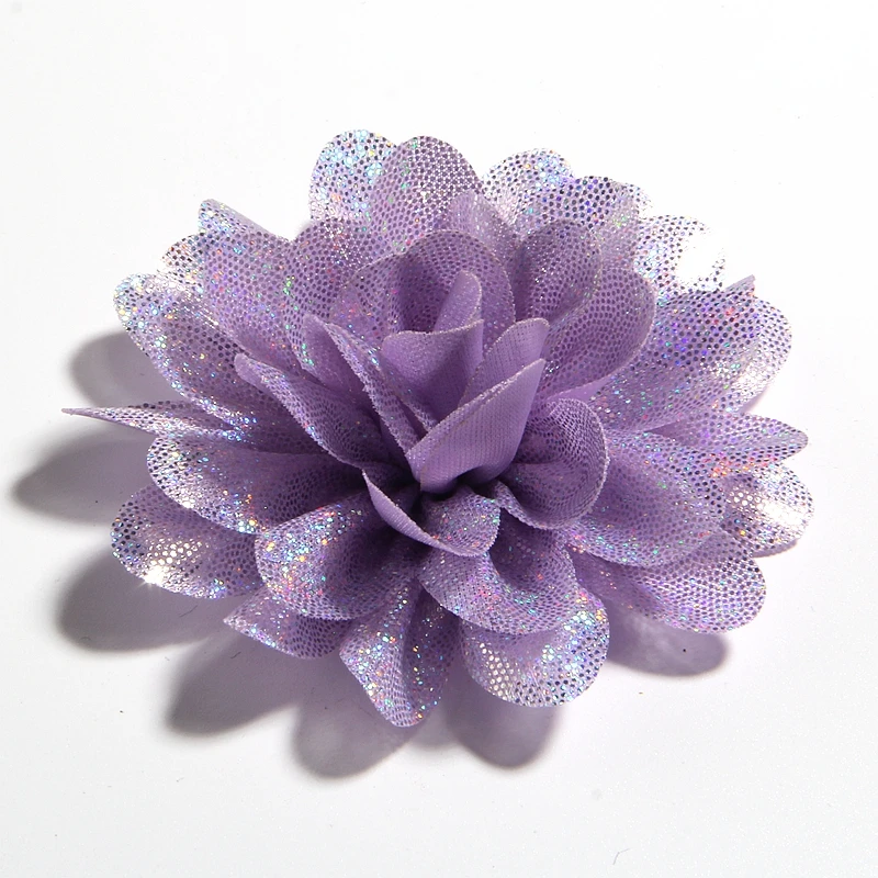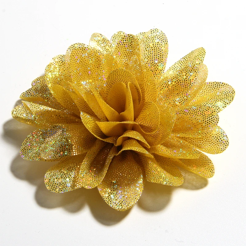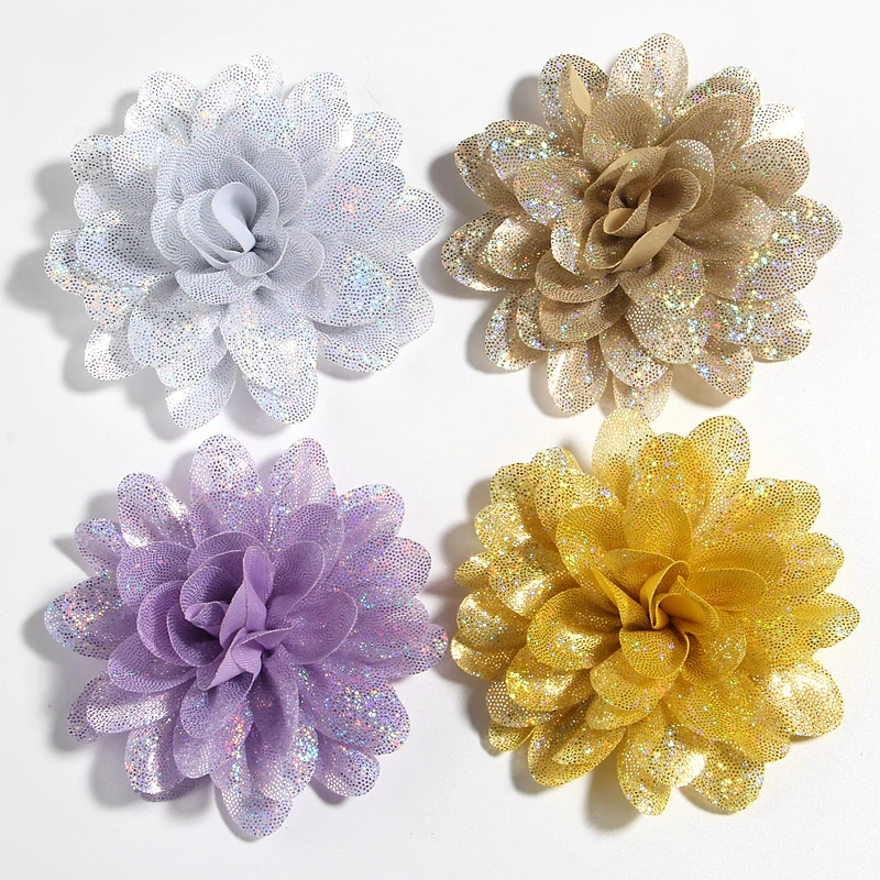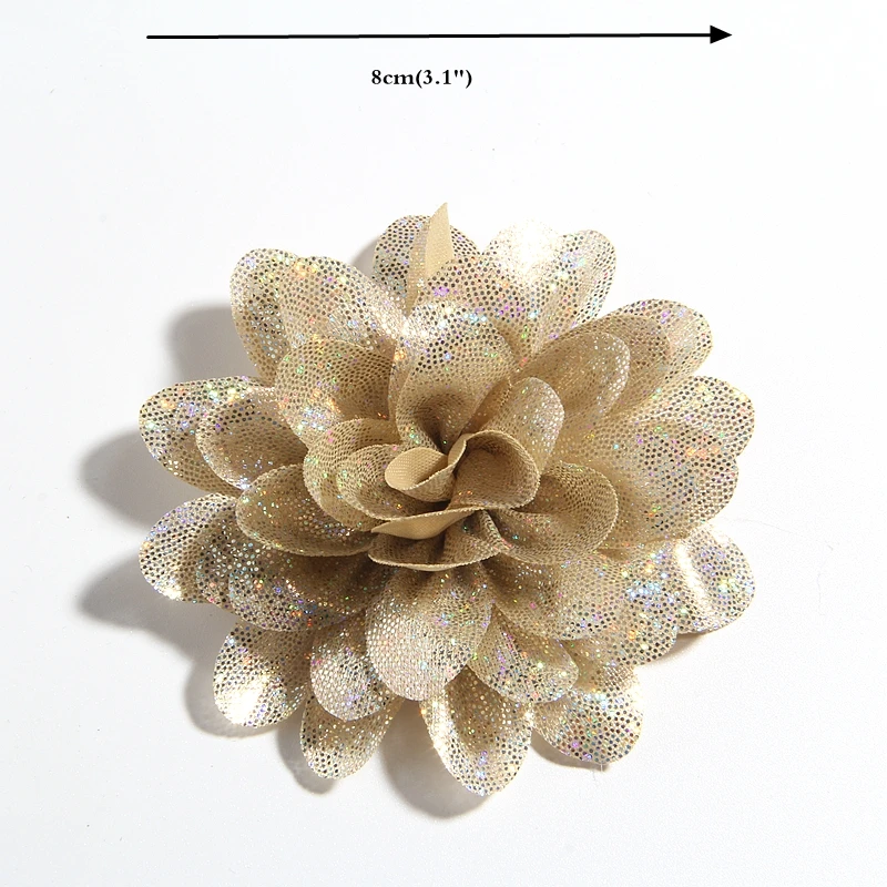 Искусственный металлический тканевый цветок, 8 см, 120 дюйма, аксессуары для волос, шифоновые блестящие цветы для волос с гребешком для свадебного бутика, 3,1 шт.