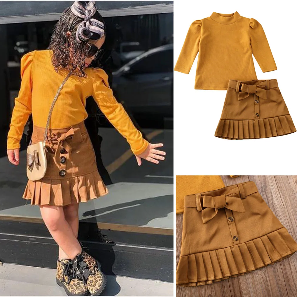 Комплект зимней одежды для маленьких девочек, Коричневый Пуловер, свитер, юбка на шнуровке, комплект повседневной одежды для девочек, одежда для маленьких девочек