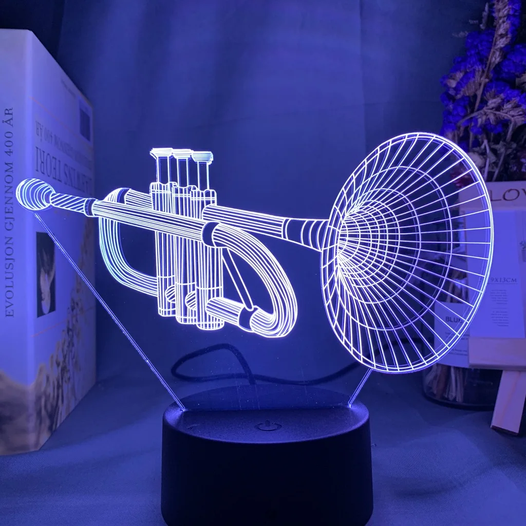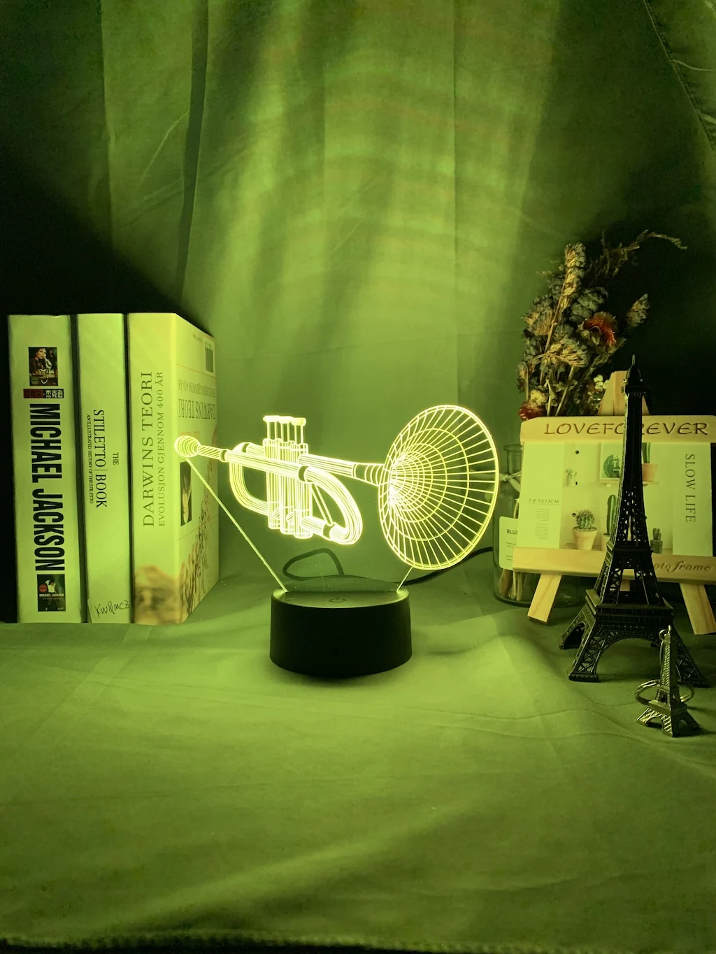 Акриловый 3d иллюзионный детский Ночной светильник, музыкальный инструмент, светодиодный сенсорный датчик, меняющий цвет, ночной Светильник для декора комнаты, 3d лампа Cornet