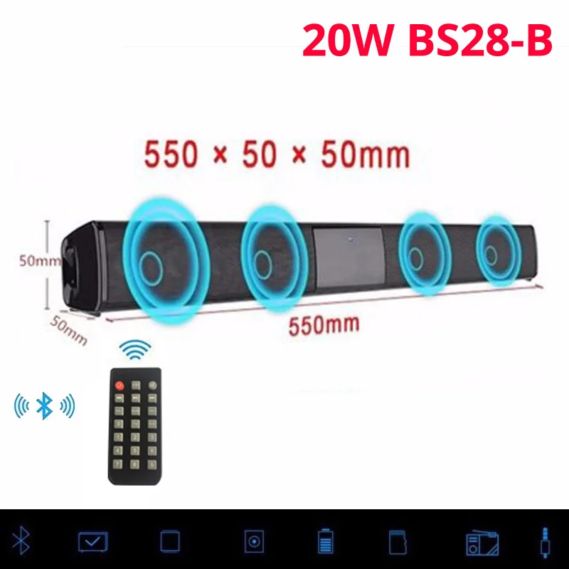 Беспроводная Bluetooth-звуковая панель 20 Вт, стерео Hi-Fi-динамик, домашний кинотеатр, ТВ-бар, система объемного звучания, AUX TF FM-радио-колонка