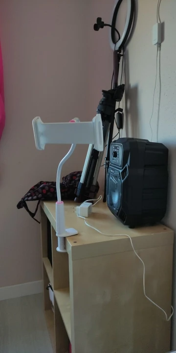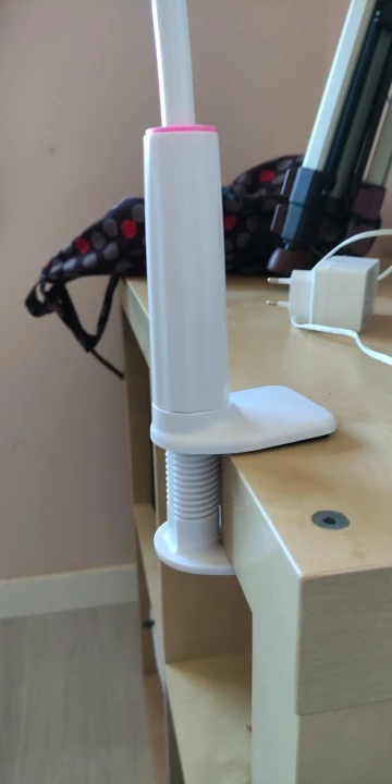 Прикрепила к столу, вроде держится хорошо. Крутится и вертится туда-сюда, что удобно. Держатель мне подошёл