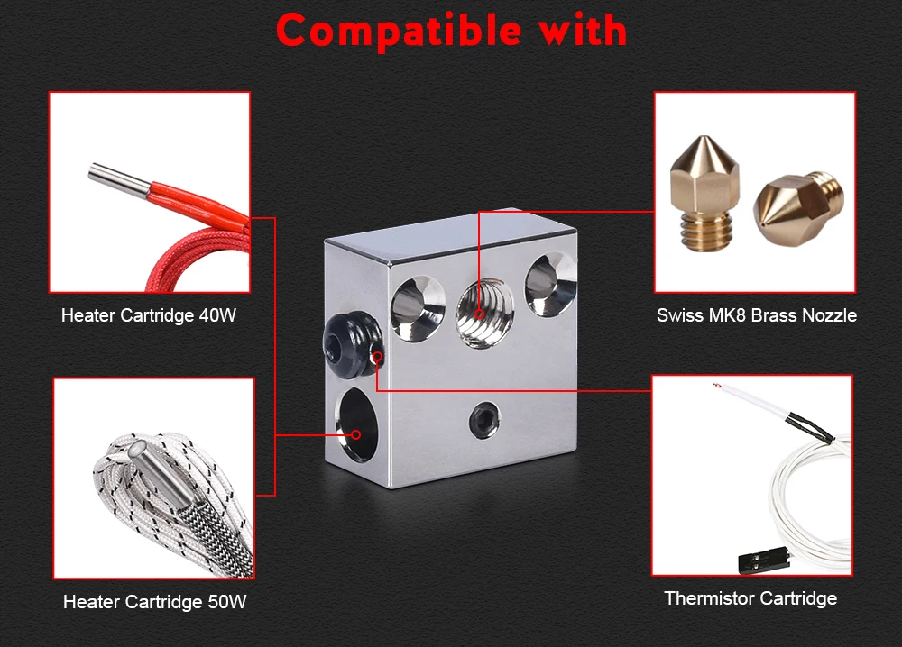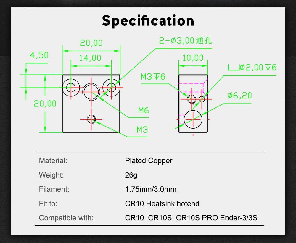 CR10 нагревательный блок с медным покрытием, детали для 3D-принтера, Hotend сопло, экструдер, тепловой блок для CR10 CR10s Pro Ender33s