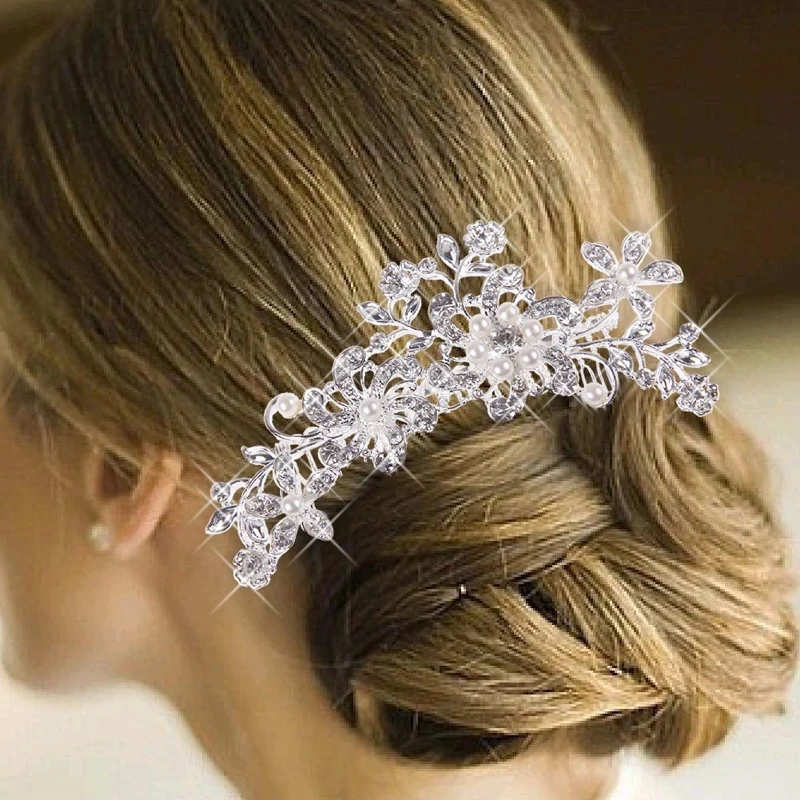 TYPE3Silver Color Pearl Crystal Wedding Hair Combs