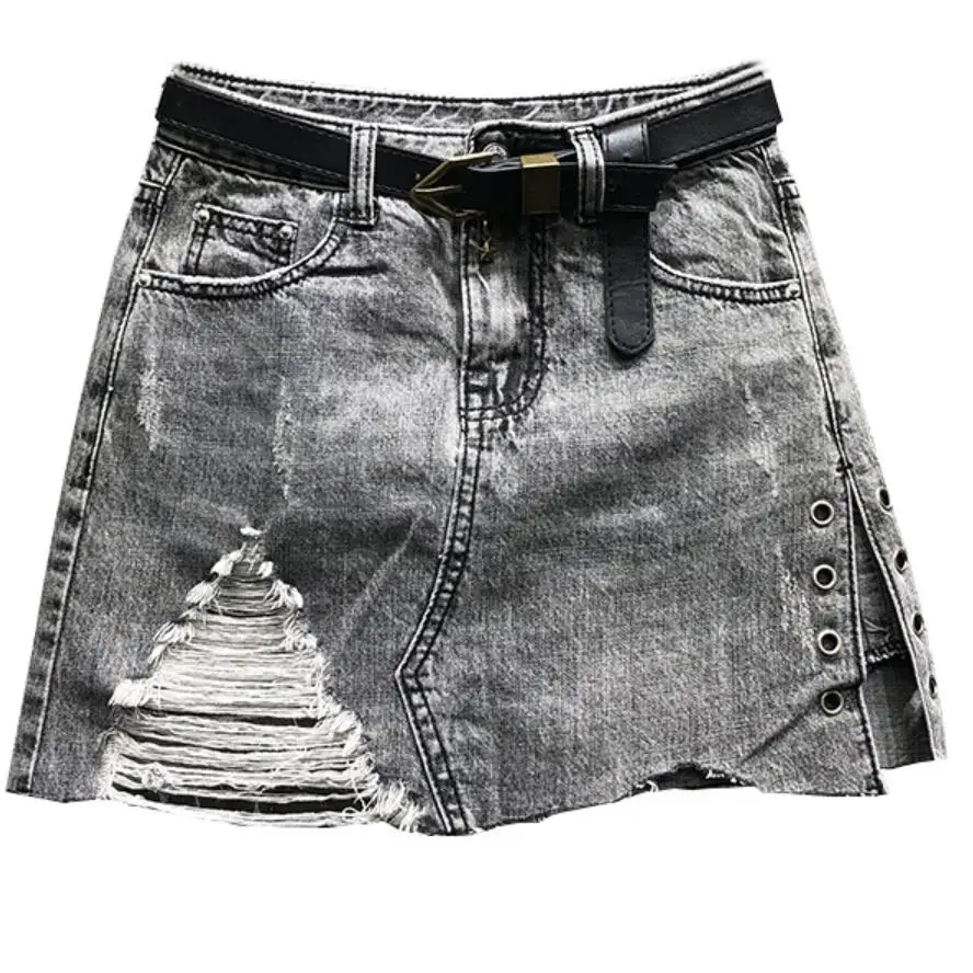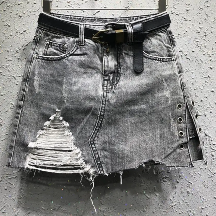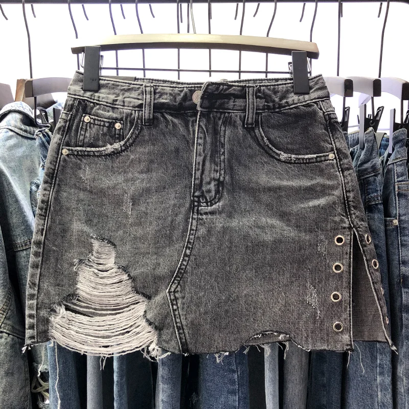Женская джинсовая мини-юбка с дырками, весна-лето 2021, новые модные светильник юбки-шорты с заклепками, большие размеры 5XL