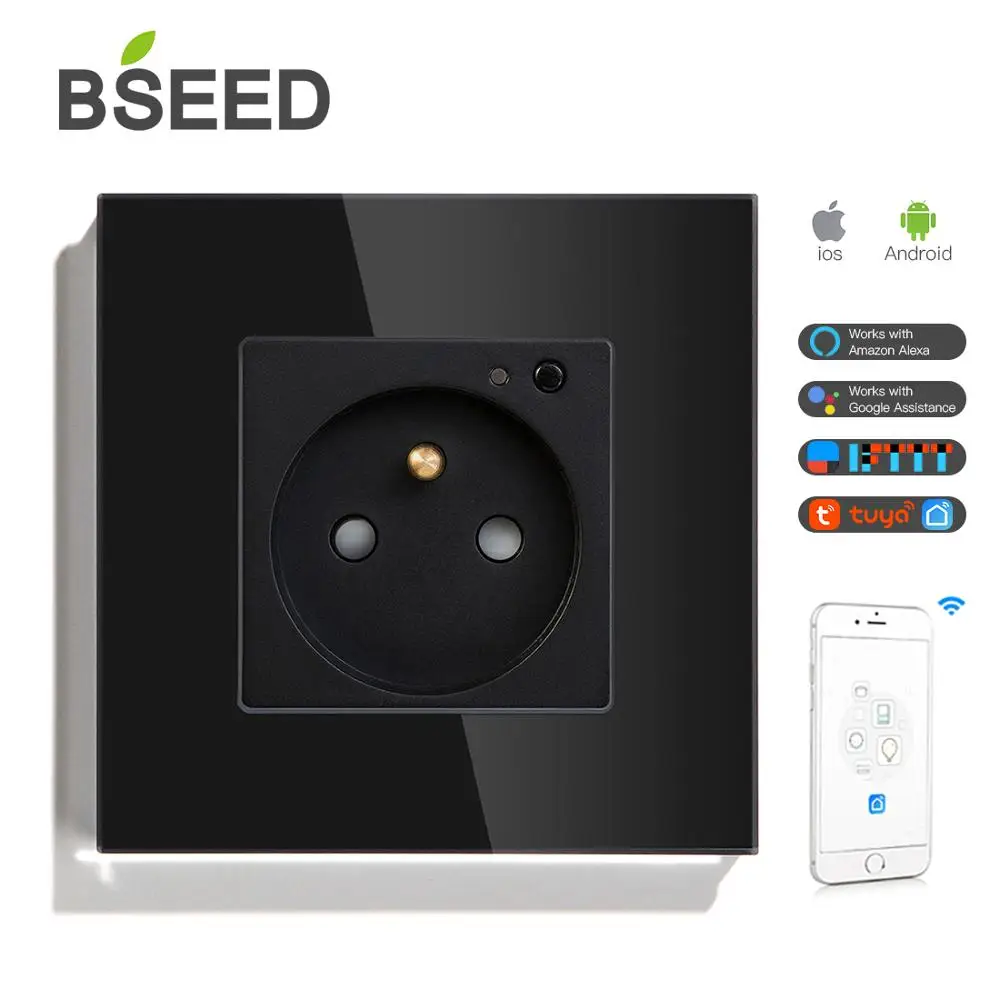 BSEED Франция розетка настенного типа Wifi управление Стекло Хрустальная Панель розетка умная Франция розетка с белым черным золотым кристаллом