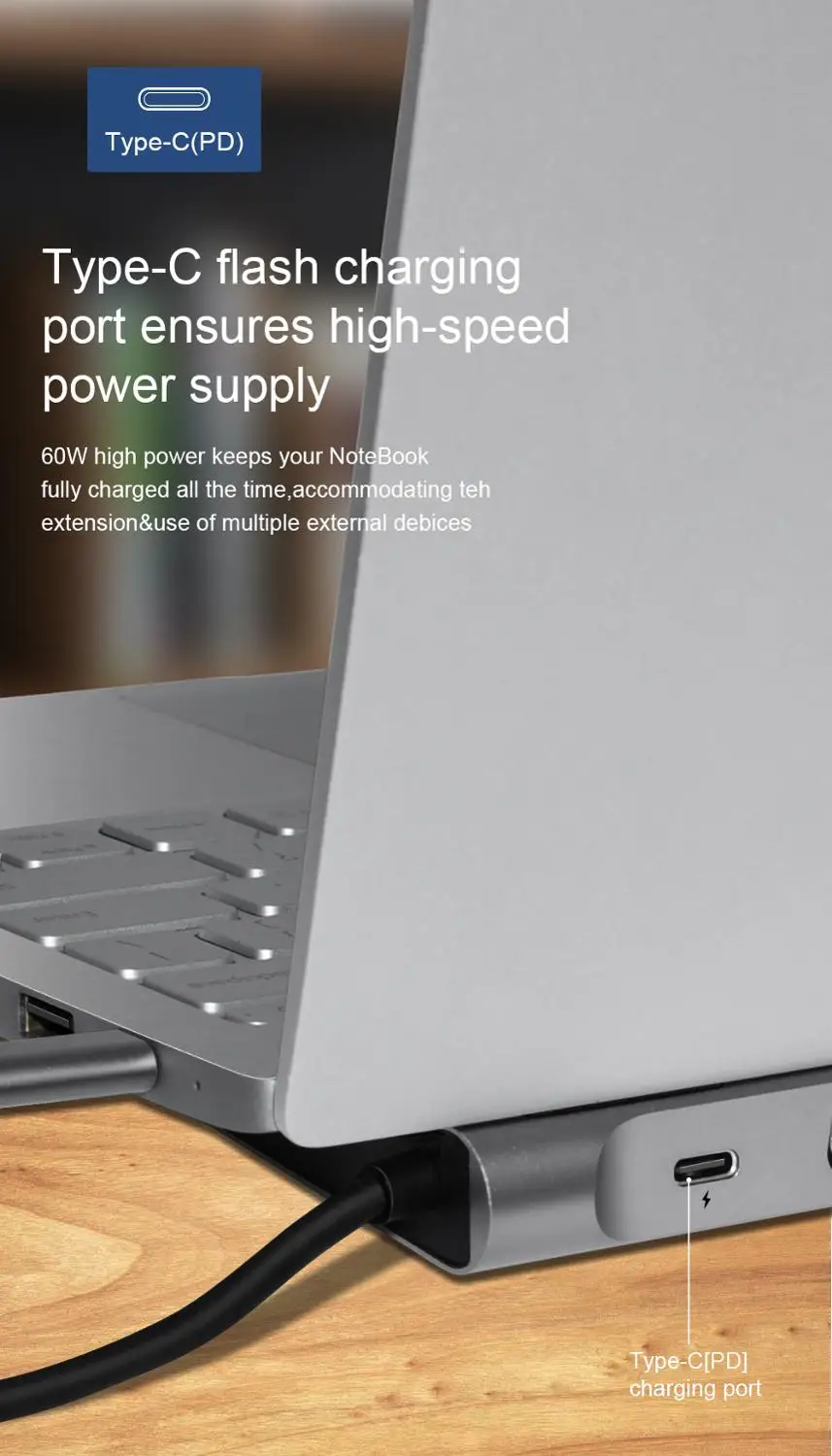 Все входы- выходы работают но зарядка через хаб идёт плохо, при сильном загрузе ноута он разряжается что для xiaomi mi book air 13- критично так как тайпси там один, и зарядка идёт через него...