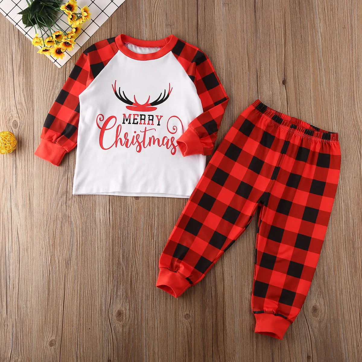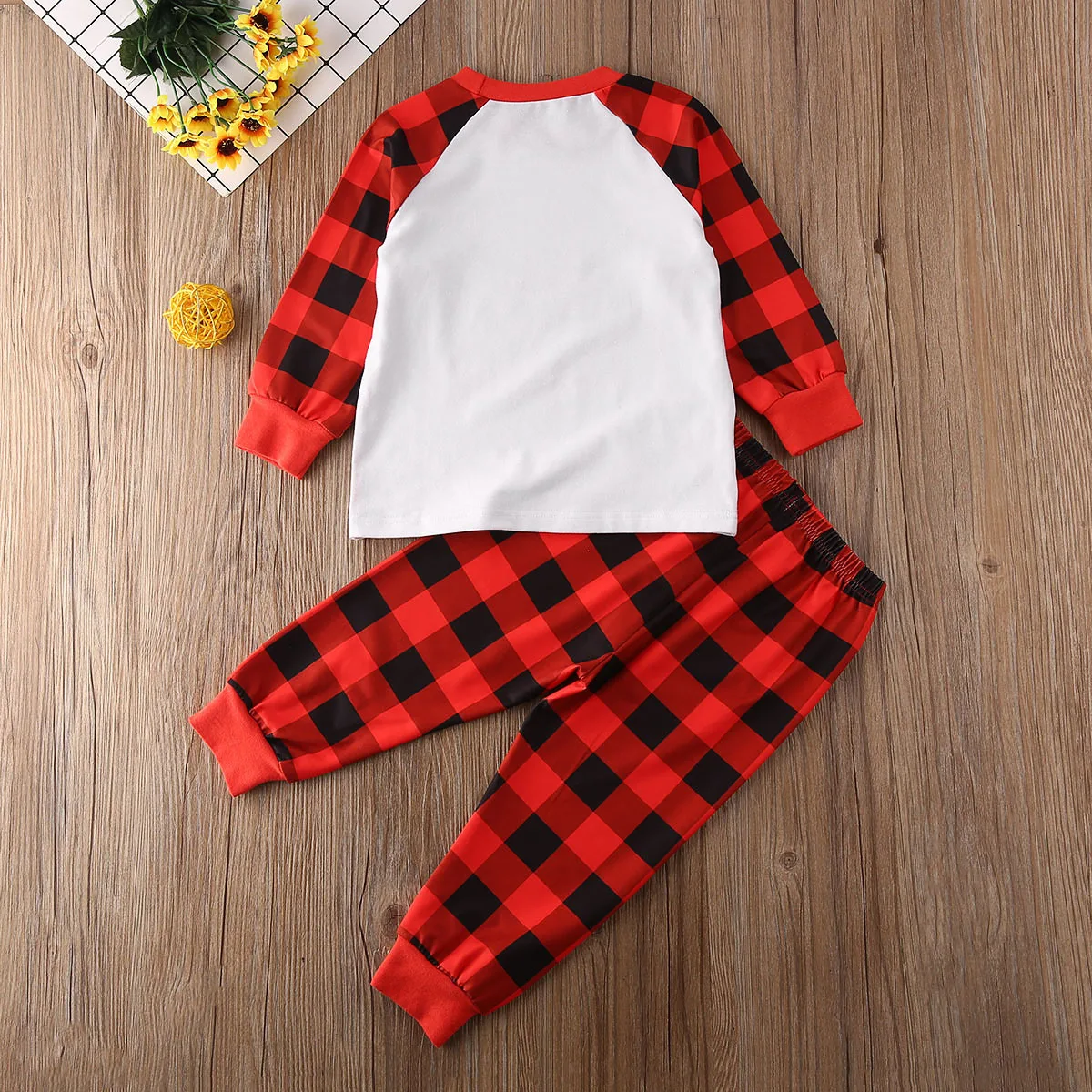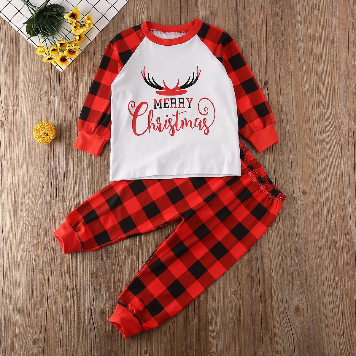 2020 Рождественская одежда Пижама с длинными рукавами для маленьких мальчиков и девочек, Рождественский топ, штаны в клетку, одежда для сна Размер для детей 3-8 лет