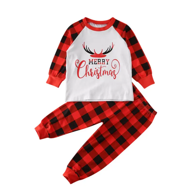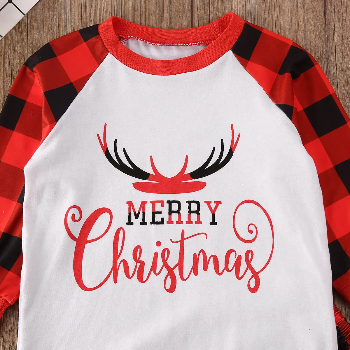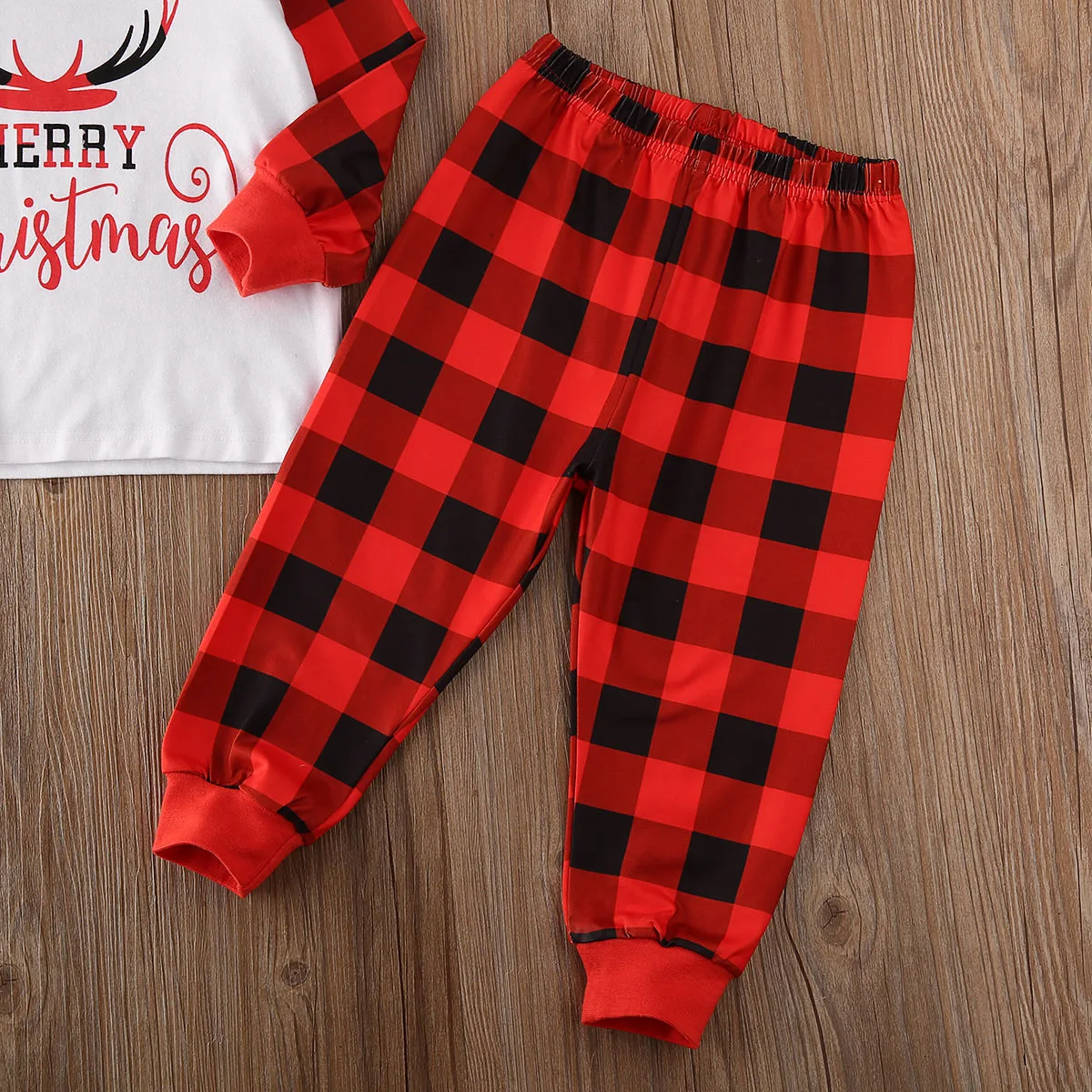 2020 Рождественская одежда Пижама с длинными рукавами для маленьких мальчиков и девочек, Рождественский топ, штаны в клетку, одежда для сна Размер для детей 3-8 лет