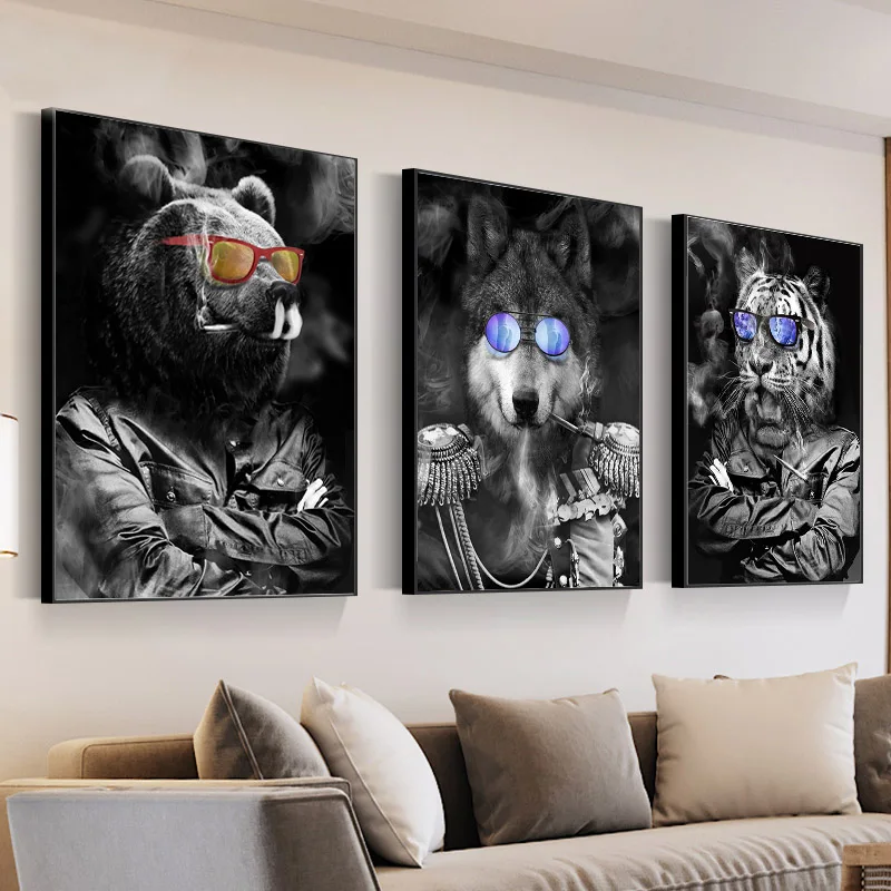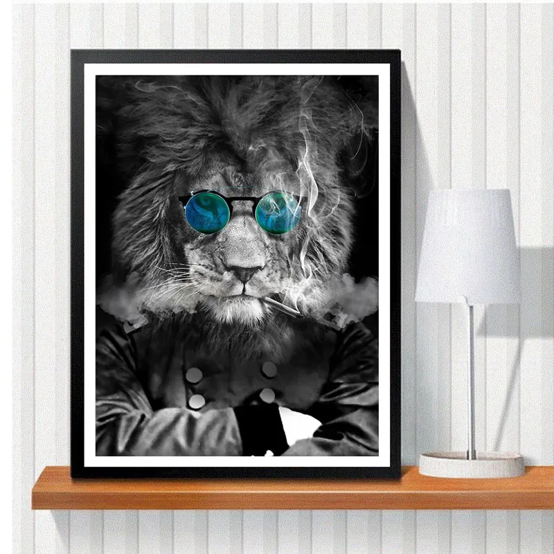 Очки Тигр Лев медведь волк настенное искусство холст DIY алмазная живопись-нордическая черно-белая вышивка животных домашний декор