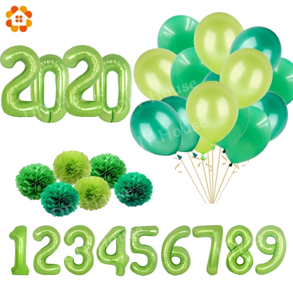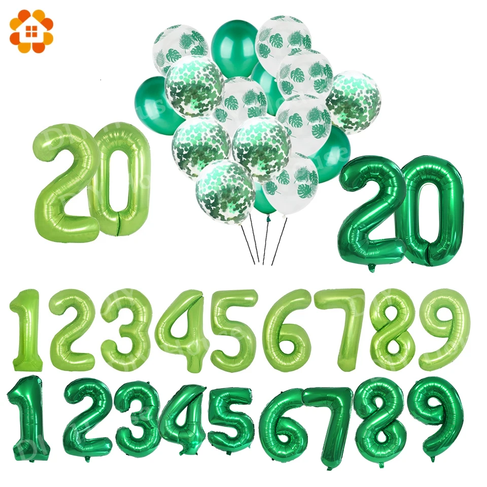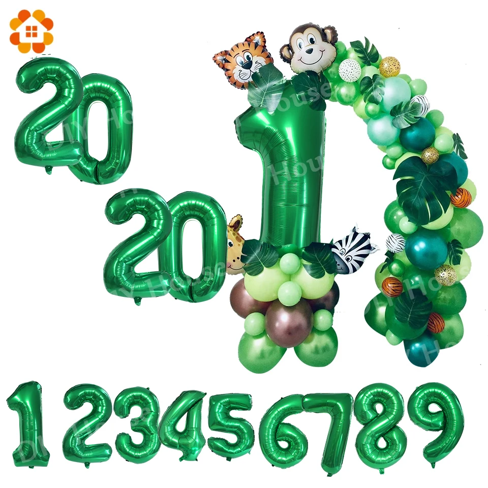 Новые зеленые цифровые вечерние льгированные воздушные шары 3240 дюйма с изображением джунглей, шары с пальмовыми листьями для детского дня рождения, товары для вечевечерние НКИ
