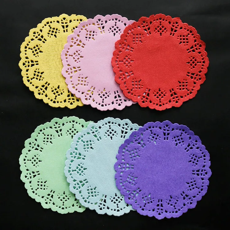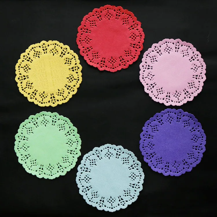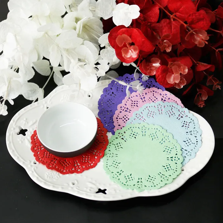 100 шт. 3,5 "салфетки Салфетка колодки из вязанного кружева Бумага коврик Винтаж Coaster столовых многослойная одежда для свадьбы, дня рождения Украшение стола