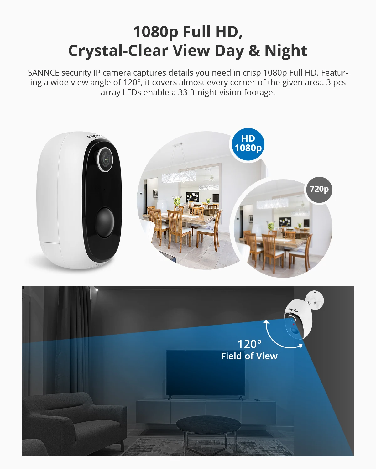 Камера видеонаблюдения SANNCE, 1080p, водонепроницаемая, IP65, беспроводная, с питанием от аккумулятора