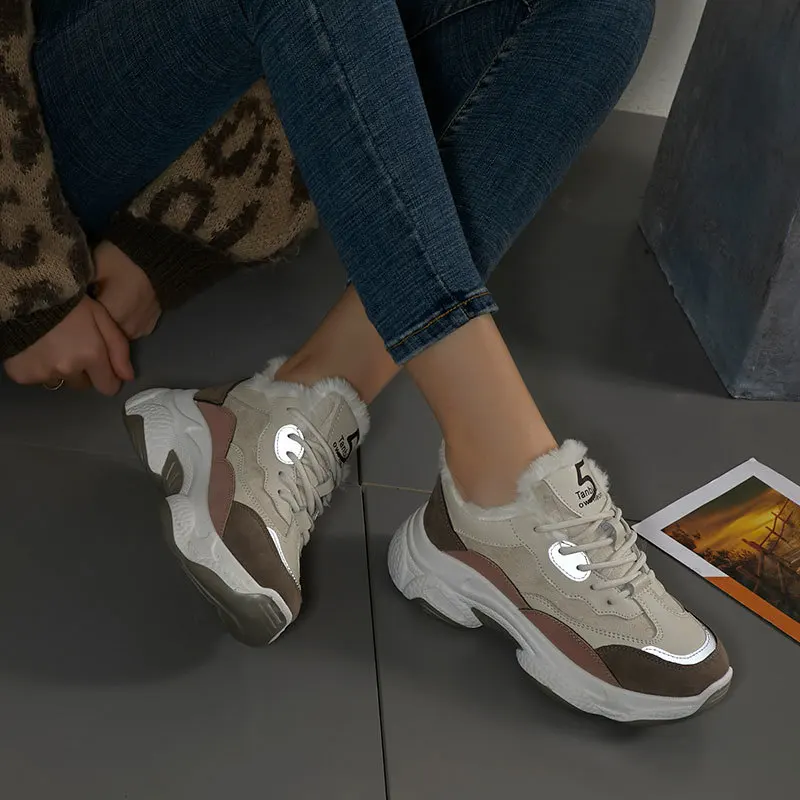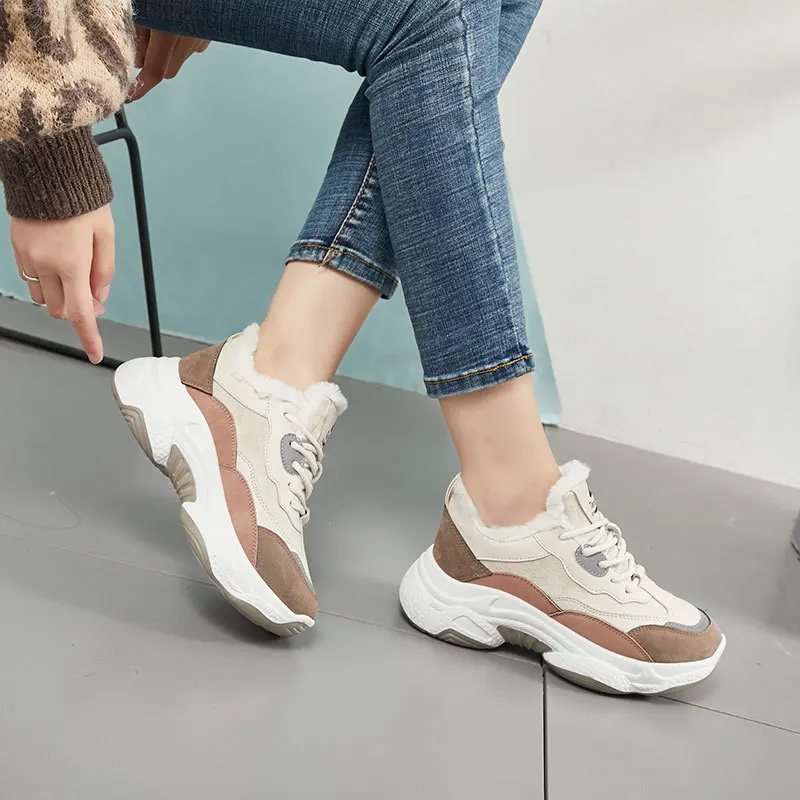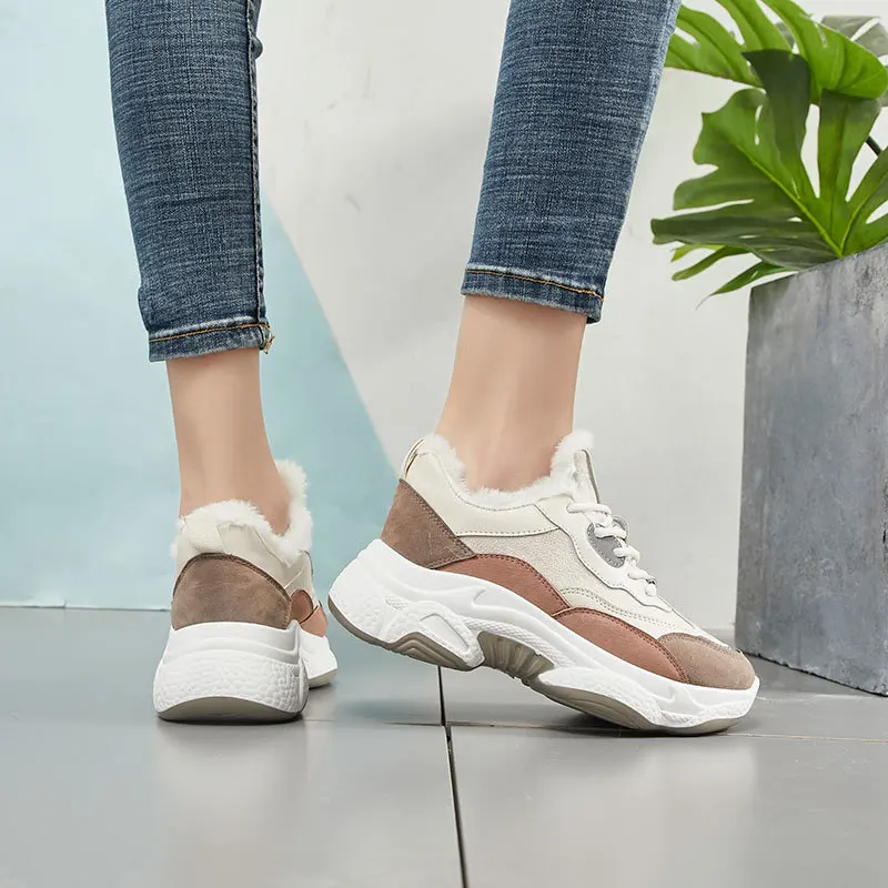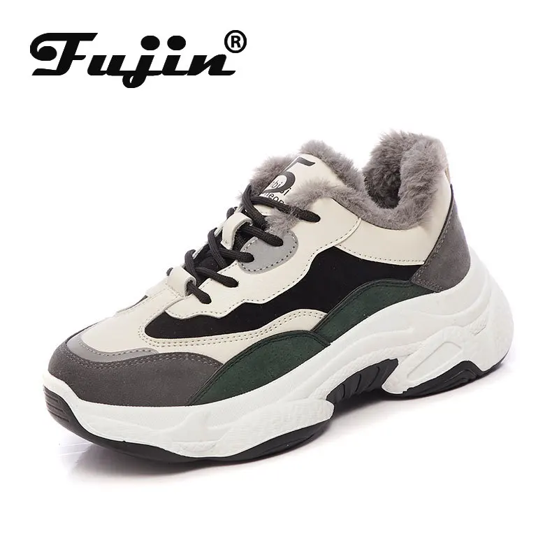 Женские кроссовки на плоской подошве Fujin, зимние, теплые, на шнуровке, дышащие, смешанные цвета, модные кроссовки для женщин