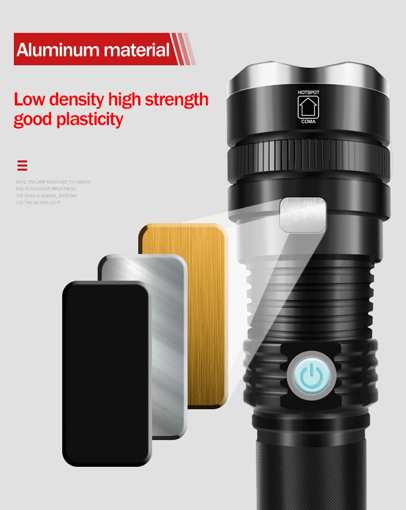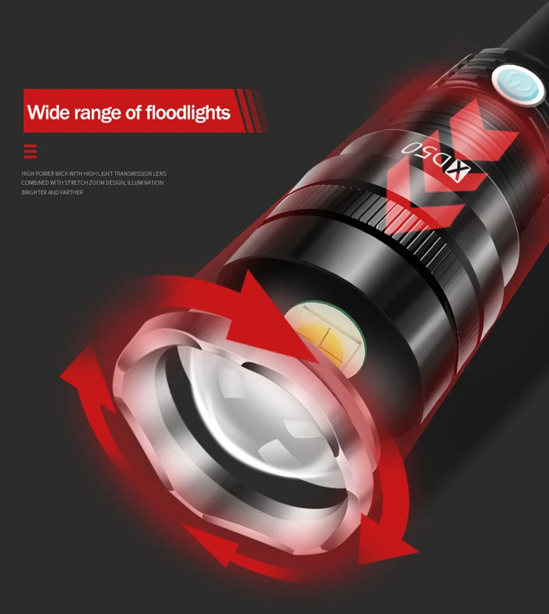 Фонарик YC50, xhp70.2, водонепроницаемый, с зарядкой от USB