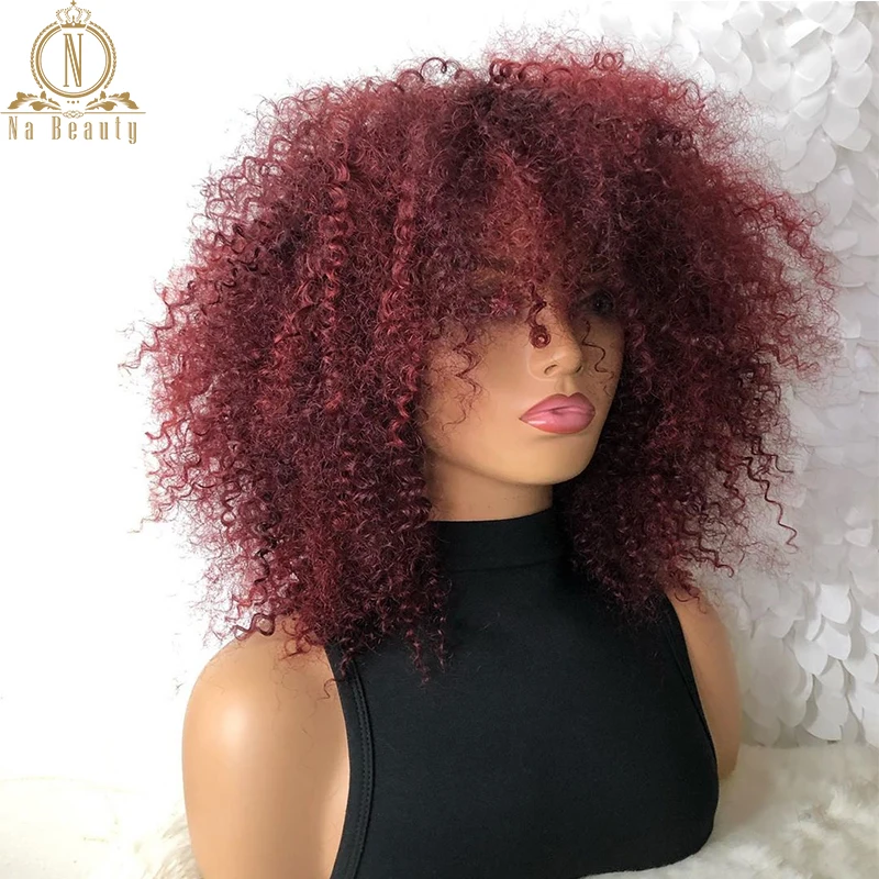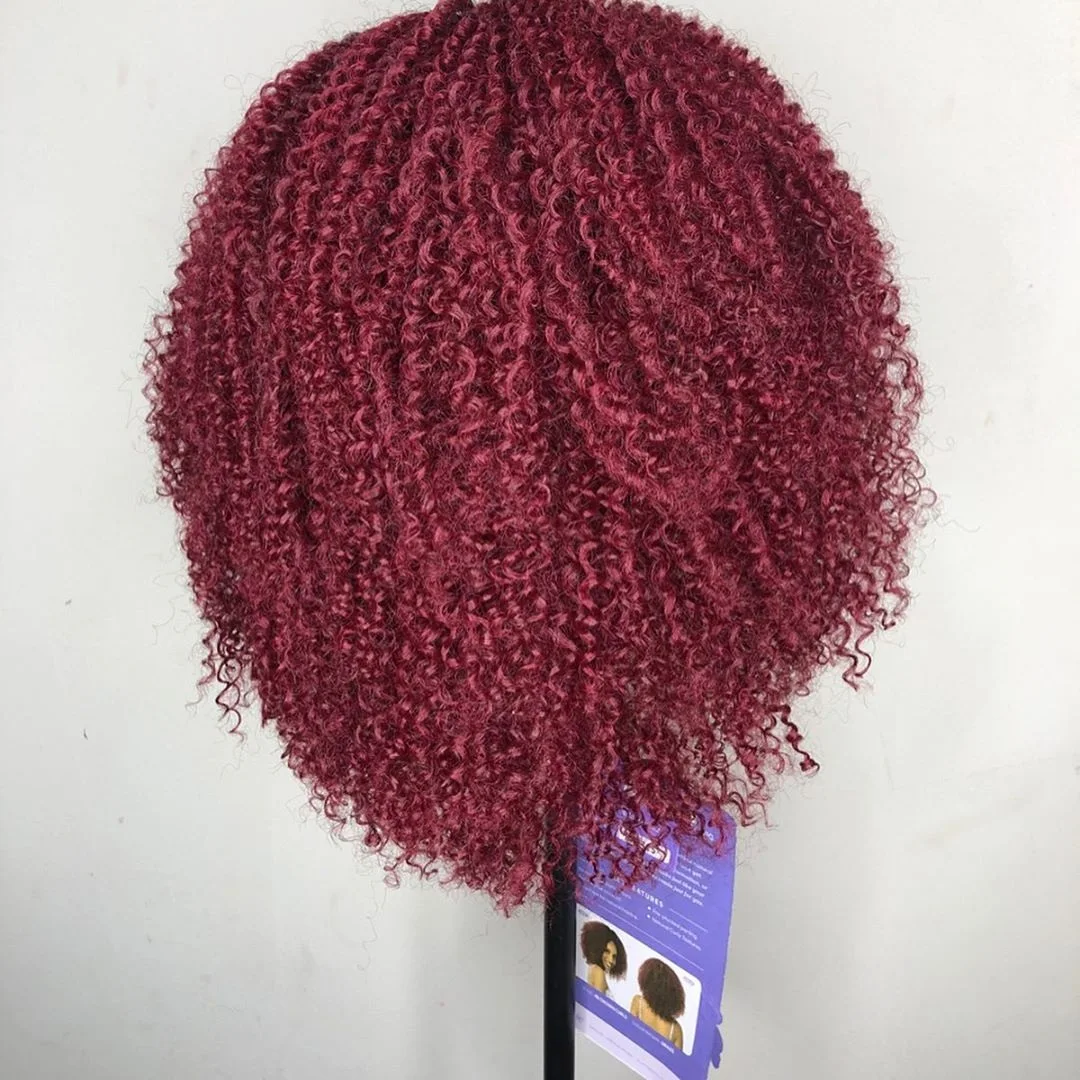 Афро кудрявые 13*6 парик на кружеве монгольские волосы remy 250 плотность 99J красный парик на кружеве парики натуральные волосы Remy черные волосы