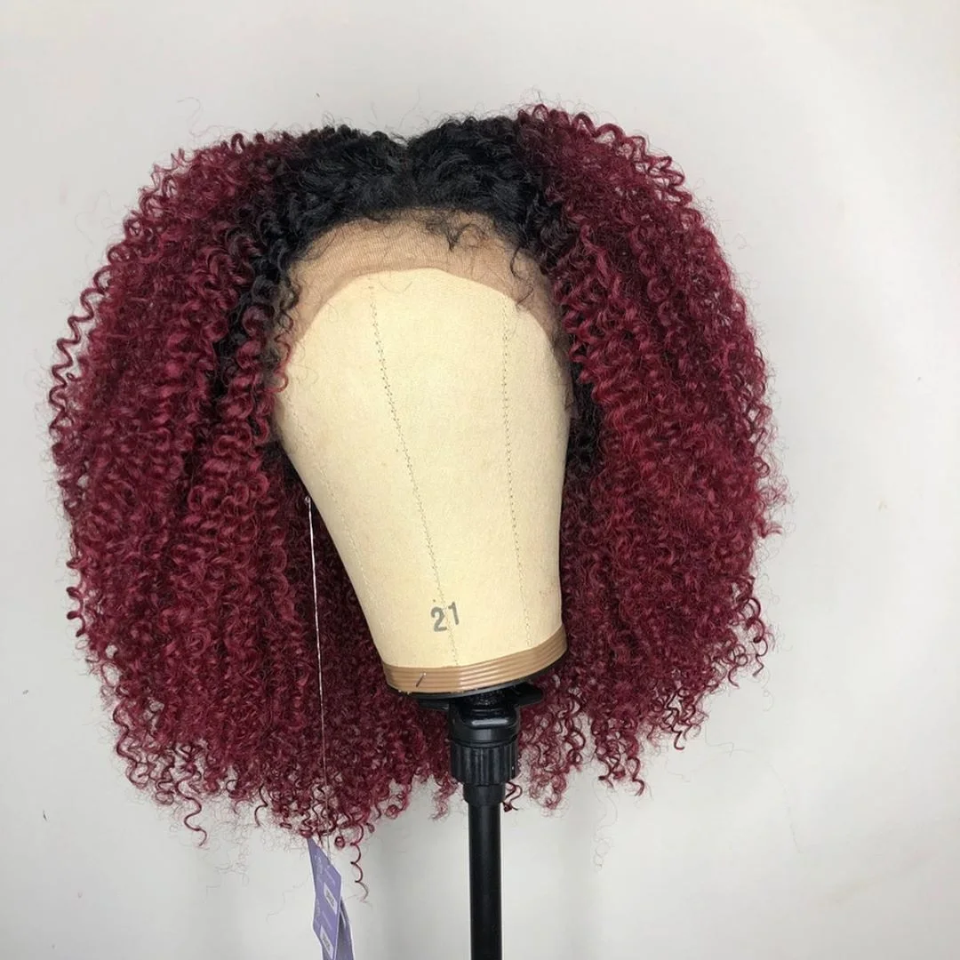 13x6 Синтетические волосы на кружеве афро парик из бразильских курчавых, Мёд блондинка 99J красные, черные парики предварительно вырезанные эффектом деграде (переход от темного к Цвет парик человеческих волос Remy