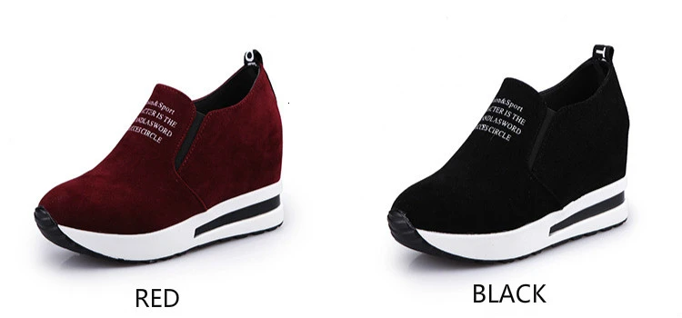 Женские кроссовки из флока, на высоком каблуке, черныекрасные, дыша...
