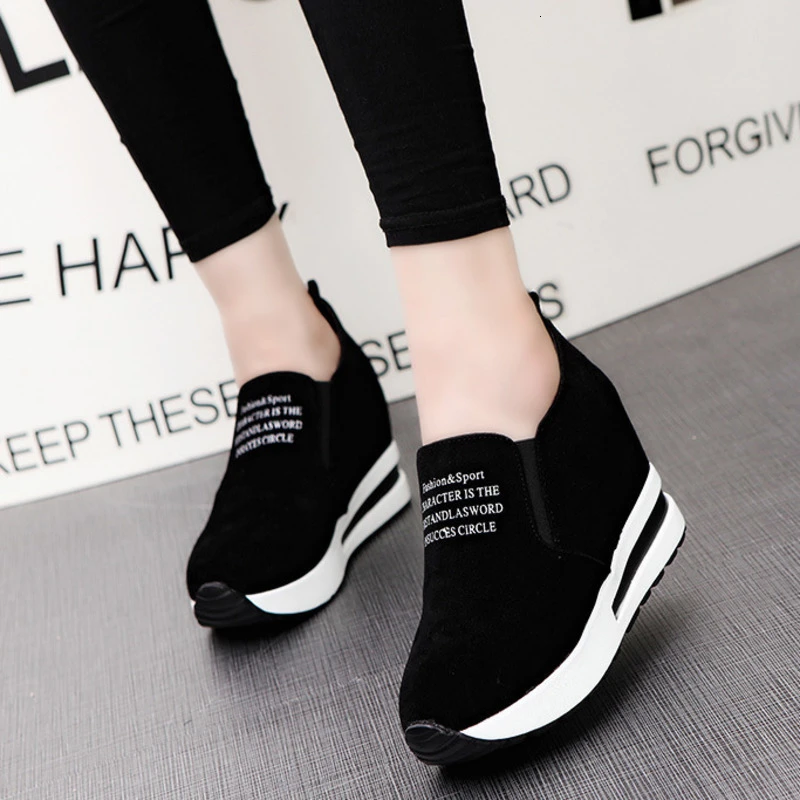 Женские кроссовки из флока на высоком каблуке, Повседневные Дышащие...