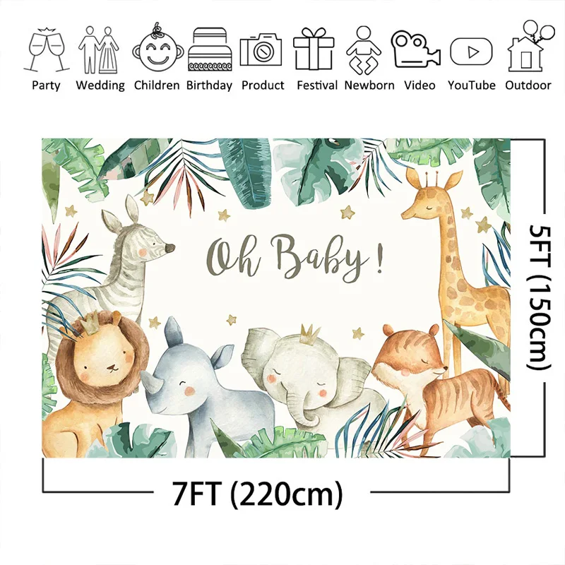 Фон для фотосъемки с изображением детского душа джунглей сафари детские животные День рождения Декорации для вечеринок