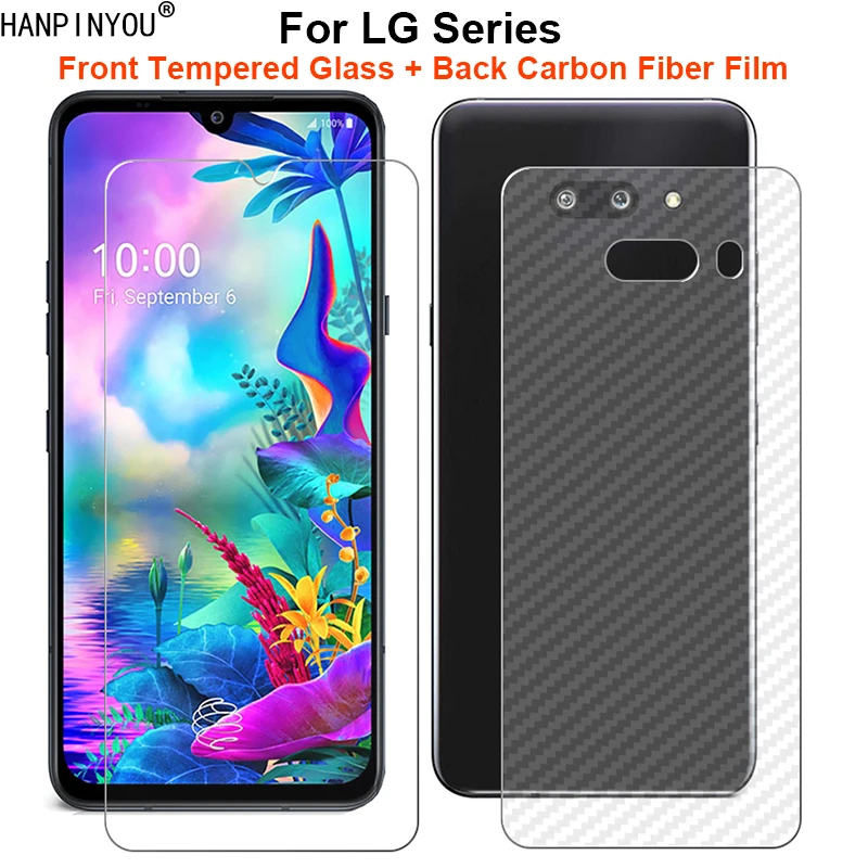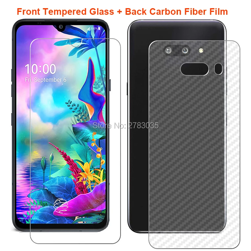 Для LG G8X V50S V50 V40 Q60 K50 K40 W30 W10 ThinQ 5G 1 комплект = мягкая задняя пленка из углеродного волокна + закаленное стекло для переднего экрана