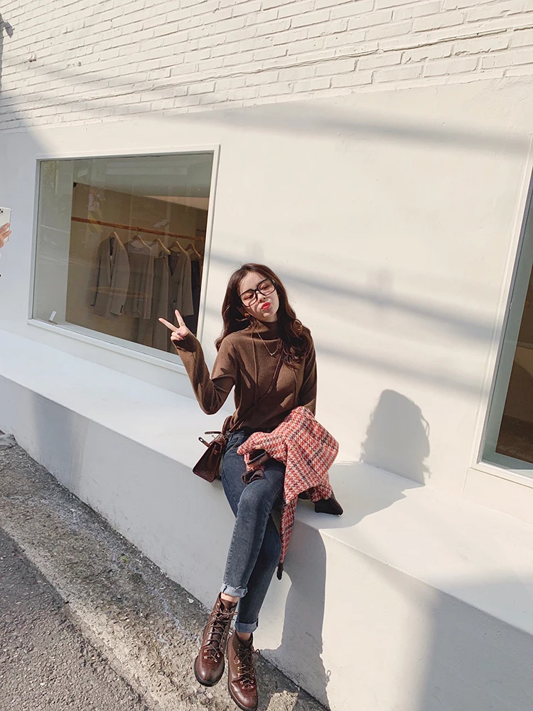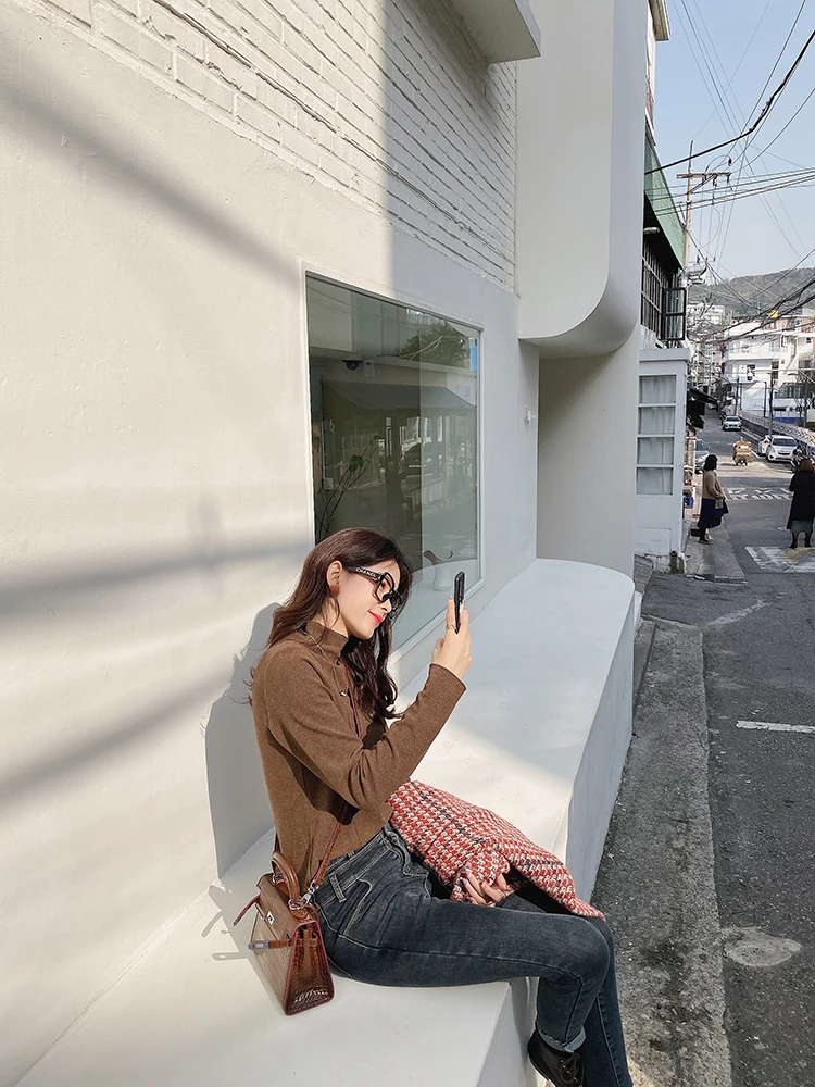 Женский однотонный вязаный свитер MISHOW, повседневный однотонный облегающий свитер с длинным рукавом, MX19D5457