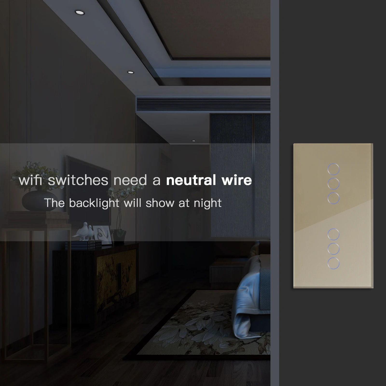 Настенный сенсорный выключатель Bseed, с Управлением по Wi-Fi, 6 клавиш, 123 канала, 3 цвета, прозрачная панель, модный умный выключатель