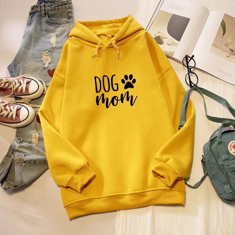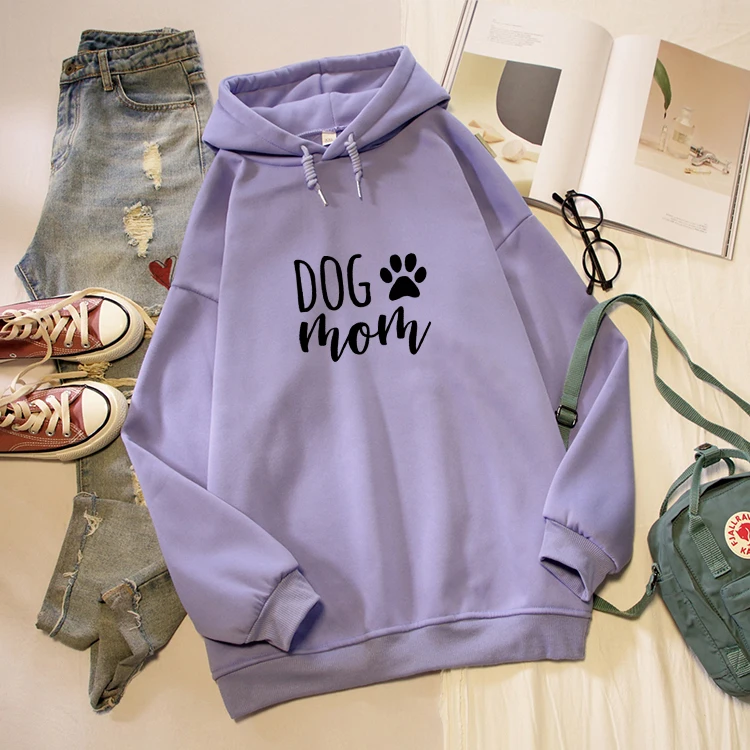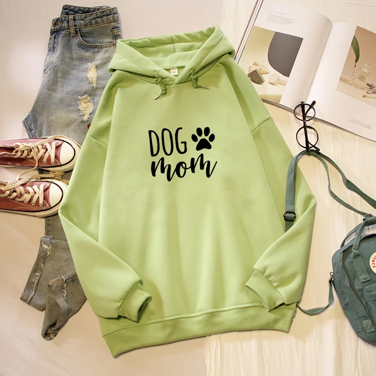 Собака Мама Толстовки с капюшоном с принтом в виде надписи для женщин в Корейском стиле Модные Kawaii толстовка с рисунком, больше обычного размера, длинный рукав, Женский пуловер уличная Топ