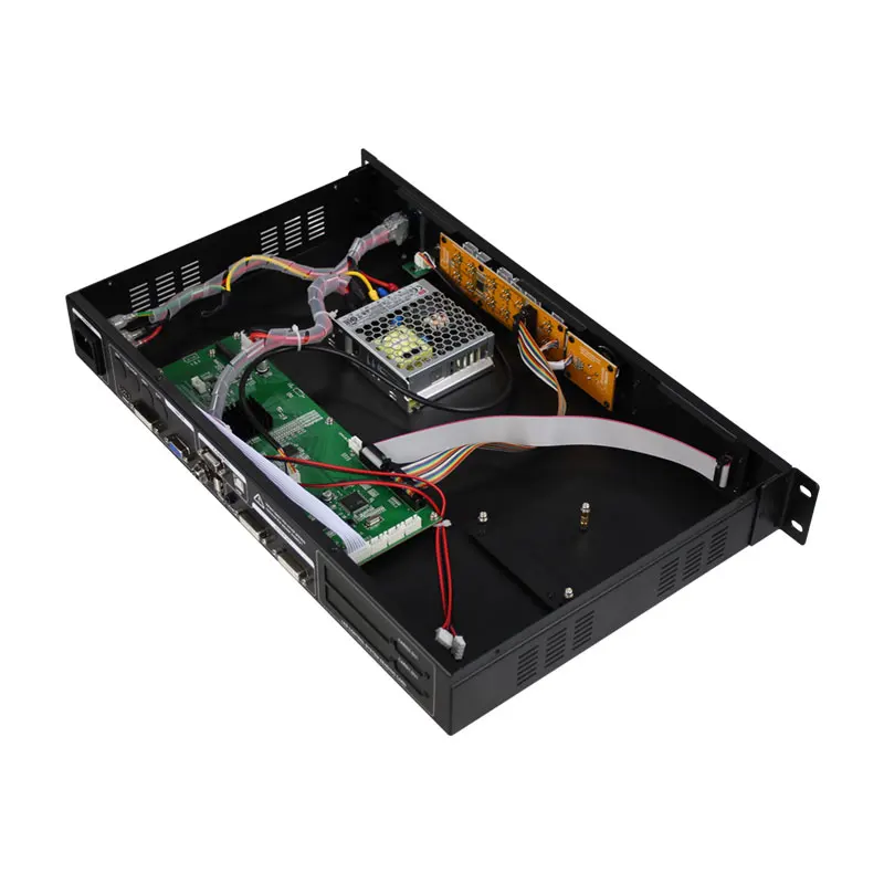 ♦ Плавно Переключайте любой канал ► Функция обнаружения сигнала ♦ Максимальное выходное разрешение 3840*640 @ 60 Гц ► 6-канальный аналогово-цифровой видео вход: 1 HDMI, 1DVI, 1VGA, 1AV, 1USB 1 SDI (опционально) wifi (опционально) ► 3-канальный блок питания с аналогово-Цифровой Видео выход: 2 DVI ♦ Быстрые настройки ручки ► Поддержка аудио выход ♦ Поддержка воспроизведения u-диска ♦ Поддержка SDI входа, циклического выхода ► Черный/заморозка ► Ключ блокировки Функция ♦ 10 наборов предустановленных шаблонов сохранены и называются